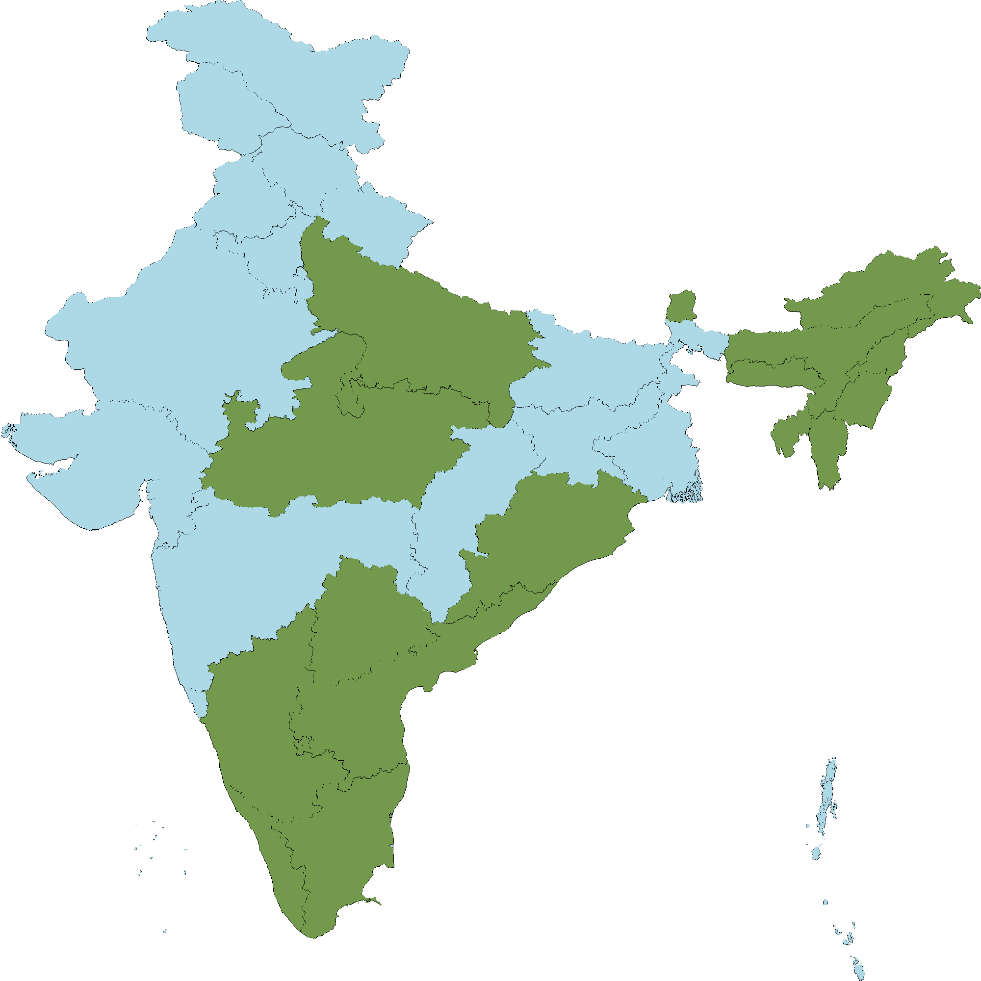 - Andhra Pradesh : Anantapur district, Chittoor district, Kadapa district, East Godavari district, Guntur district, Krishna district, Kurnool district, Nellore district, Prakasam district, Srikakulam district, Vishakapatnam district, Vizianagaram district, West Godavari district
