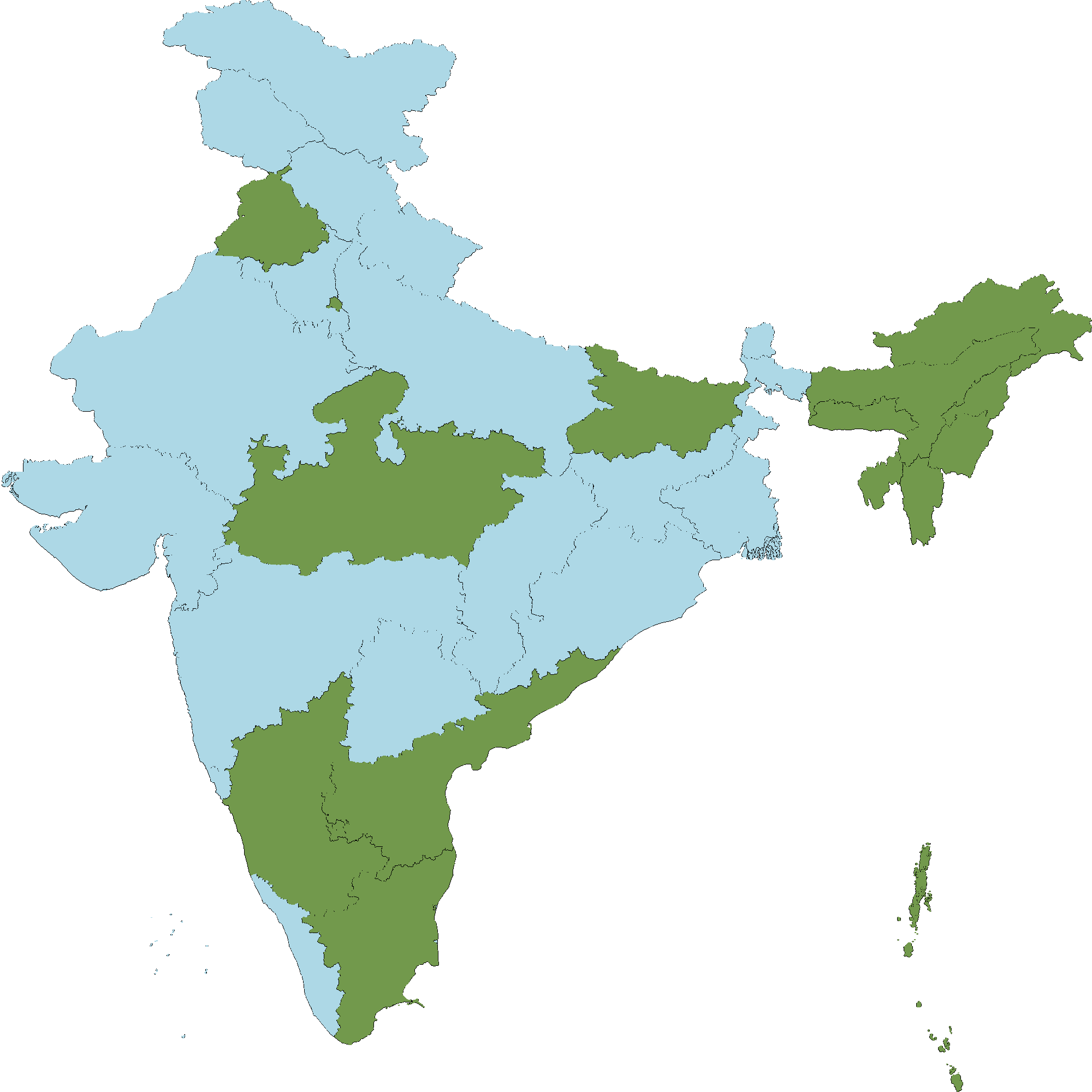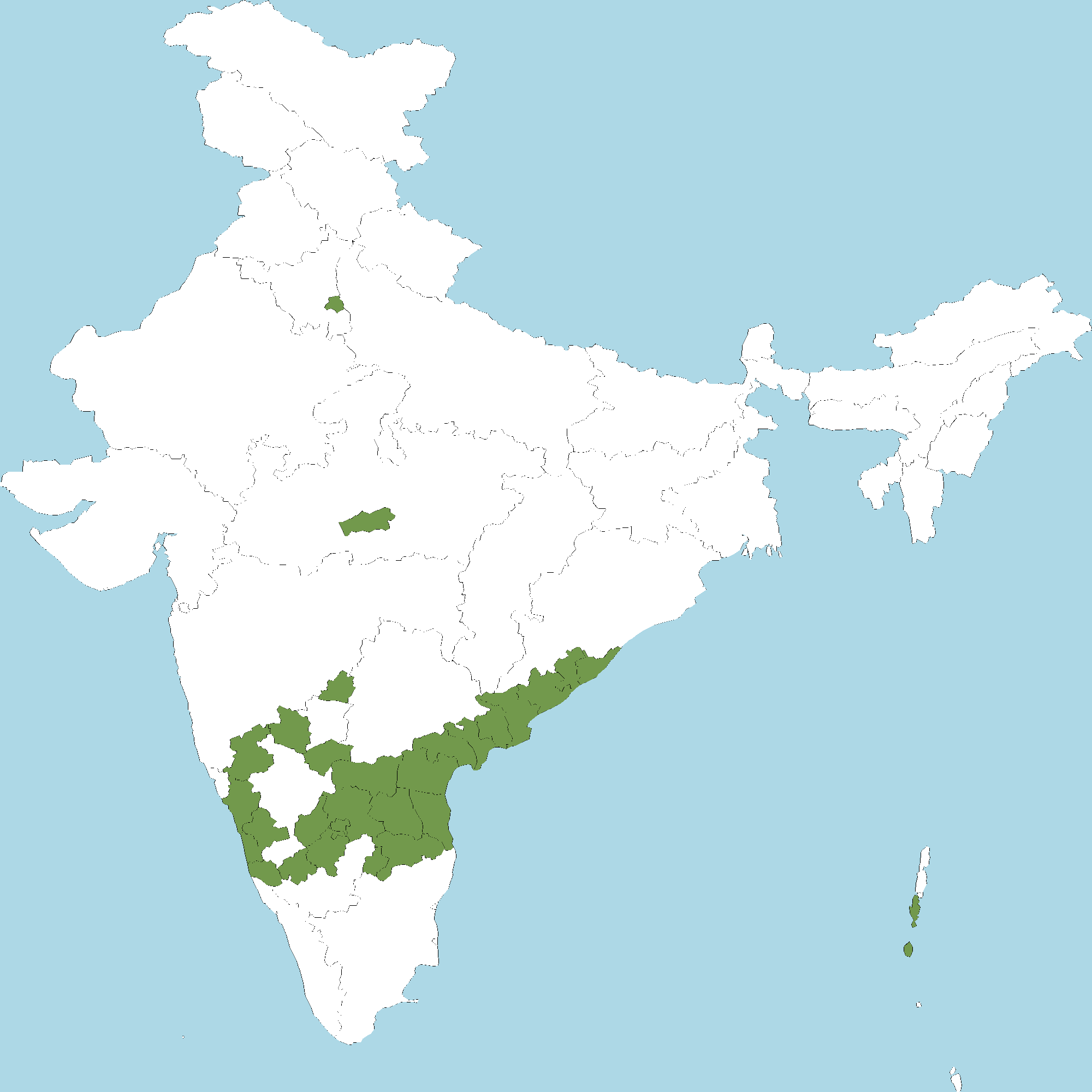 - Karnataka : Belagavi district, Bidar district, Vijayapura (Bijapur) district, Chitradurga district, Kolar district, Raichur district, Shivamogga district, Tumakuru district, Uttara Kannada district, Dakshina Kannada district, Udupi district, Hassan district