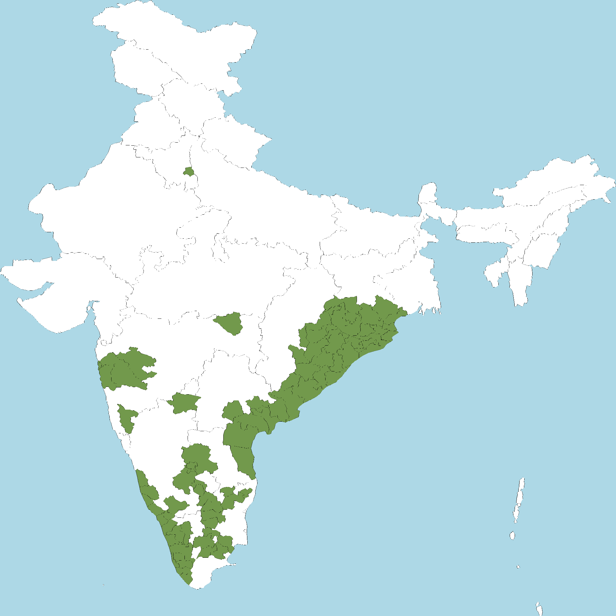 - Andhra Pradesh : Anantapur district,East Godavari district, Guntur district, Krishna district, S.P.S. Nellore district, Prakasam district, Srikakulam district, Visakhapatnam district, Vizianagaram district, West Godavari district