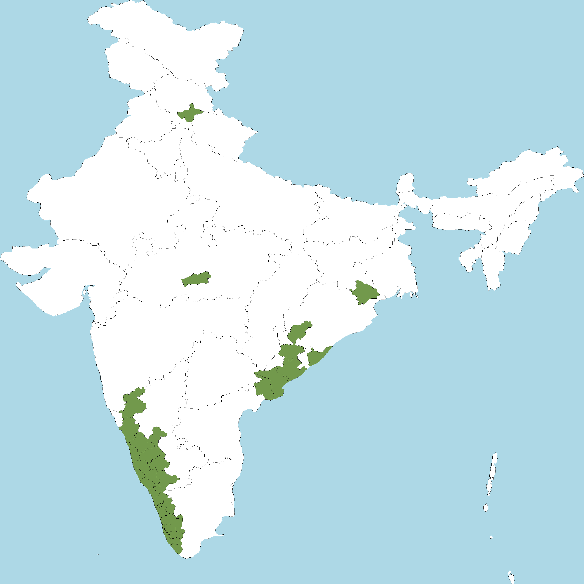 - Kerala : All districts of Kerala