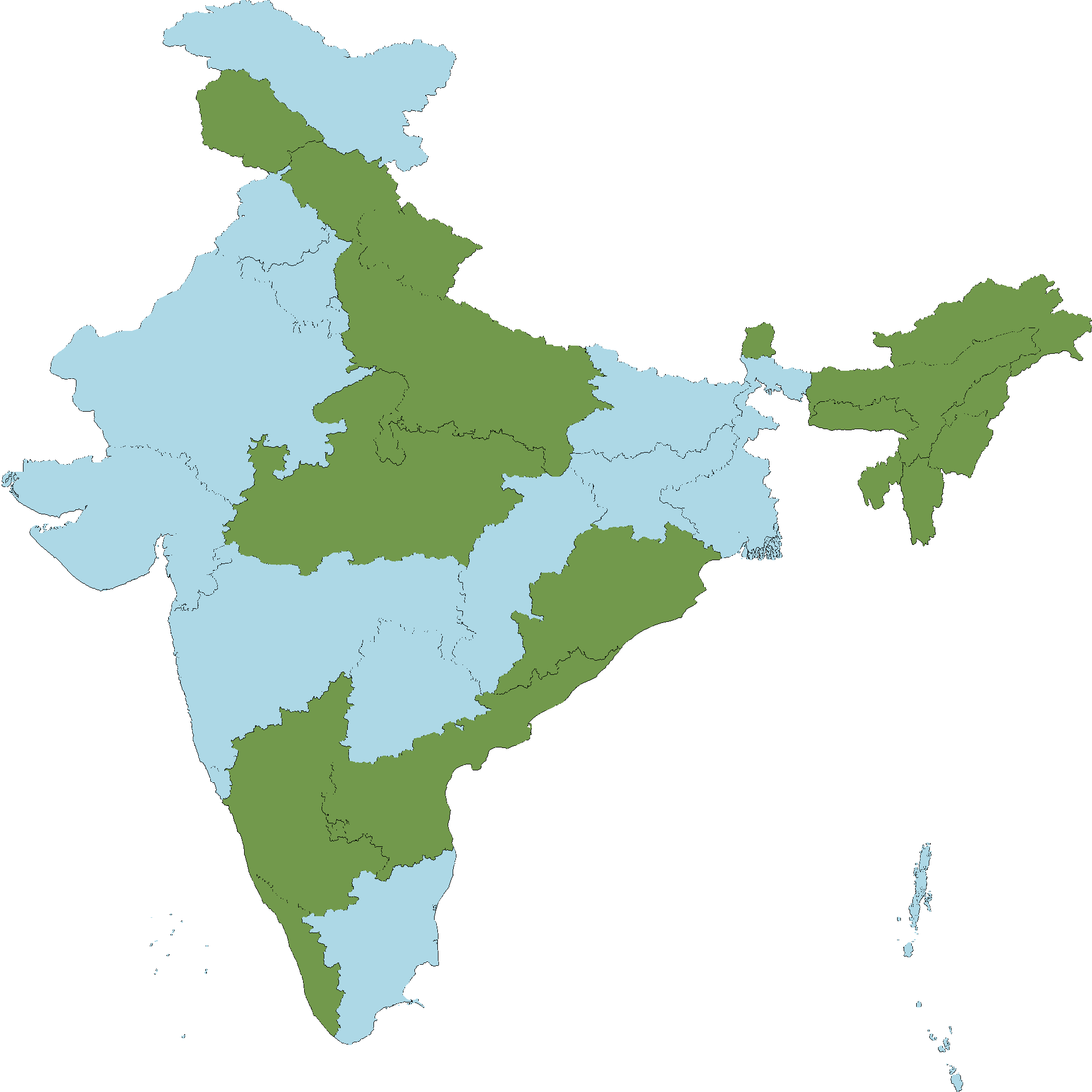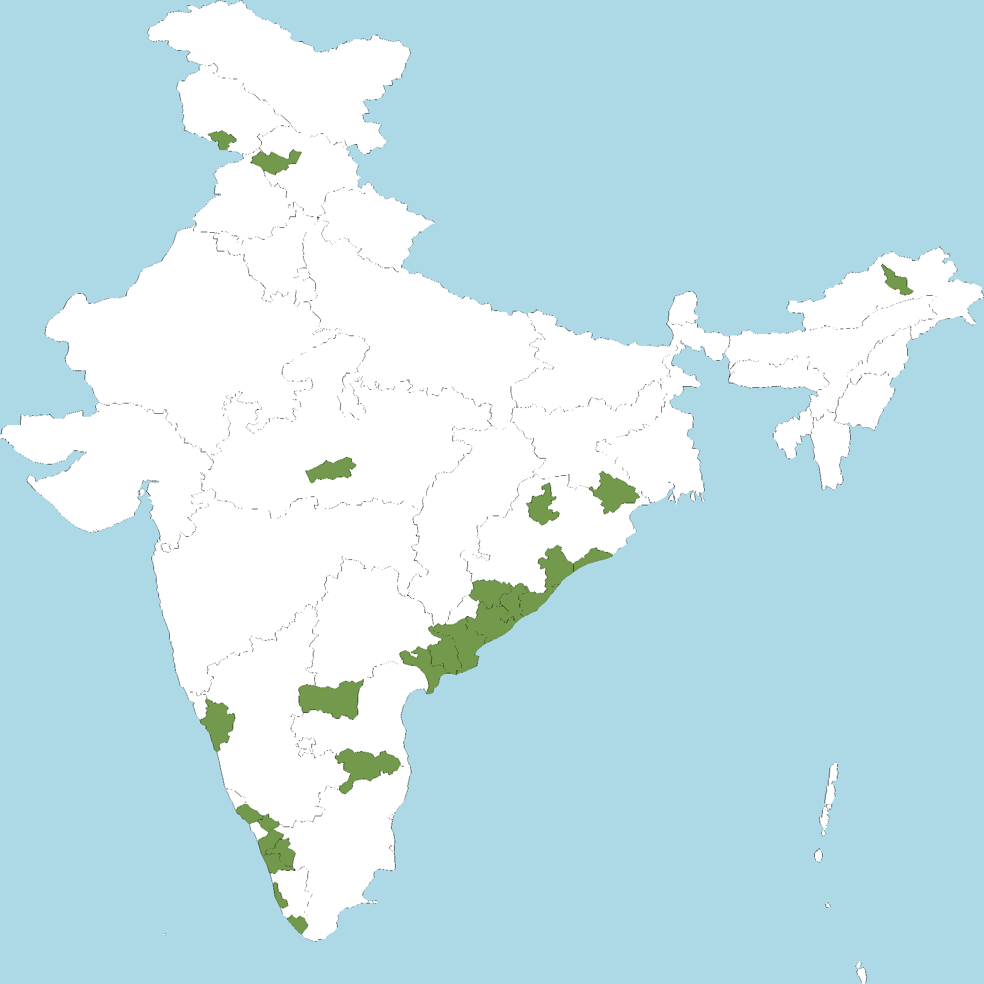 - Kerala : Kannur district, Wayanad district, Malappuram district, Palakkad district, Thrissur district, Alappuzha district, Thiruvananthapuram district