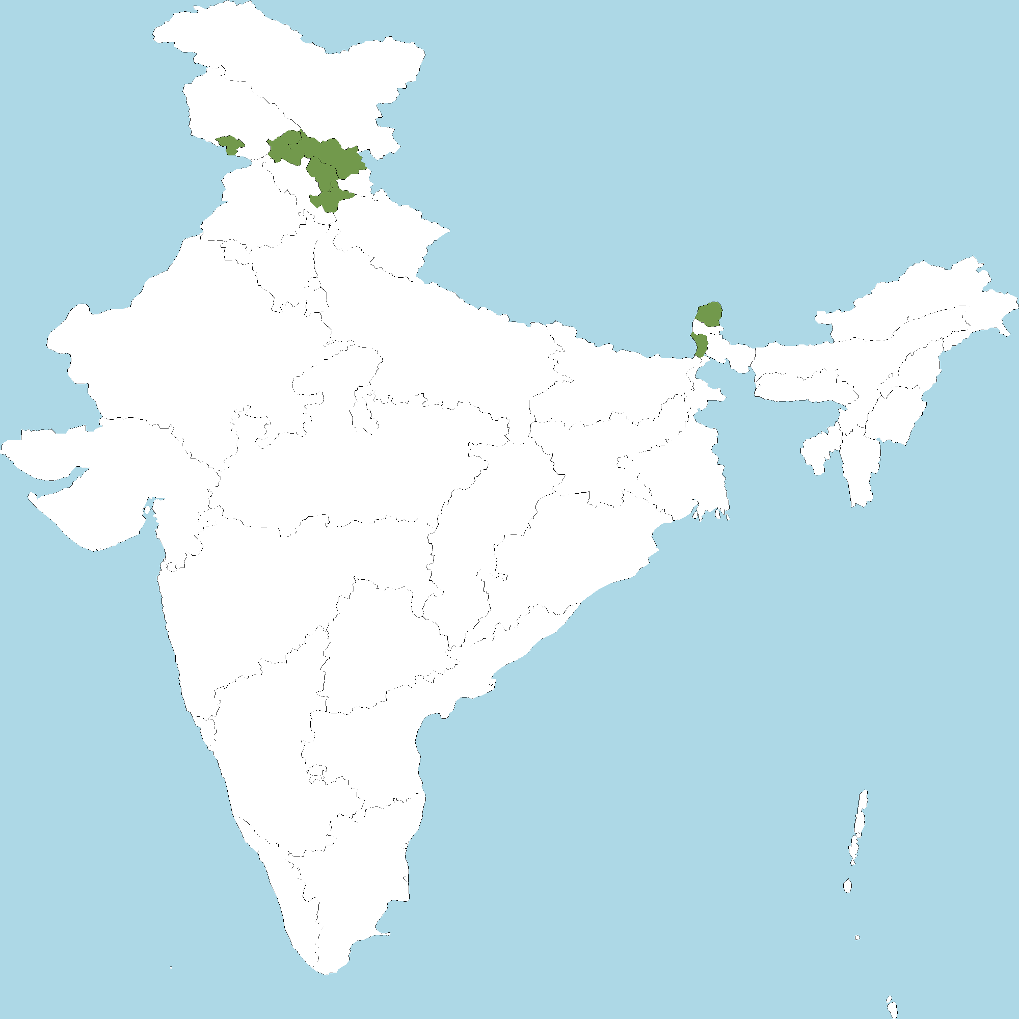 • Native : Afghanistan, Bhutan, China, India, Nepal, Pakistan, Tadzhikistan, Tibet