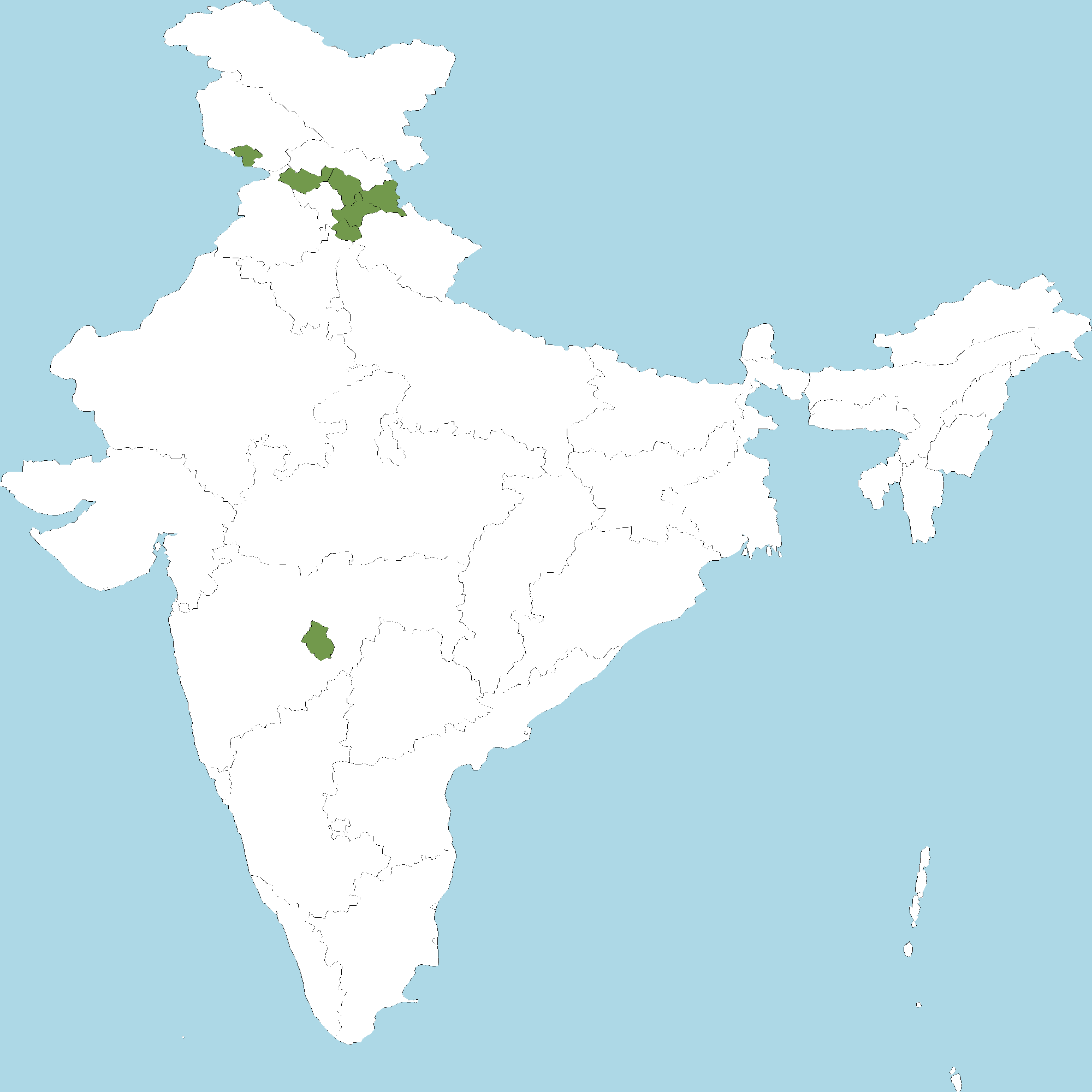 - Himachal Pradesh : Kangra district, Kinnaur district, Kullu district, Sirmaur district, Shimla district