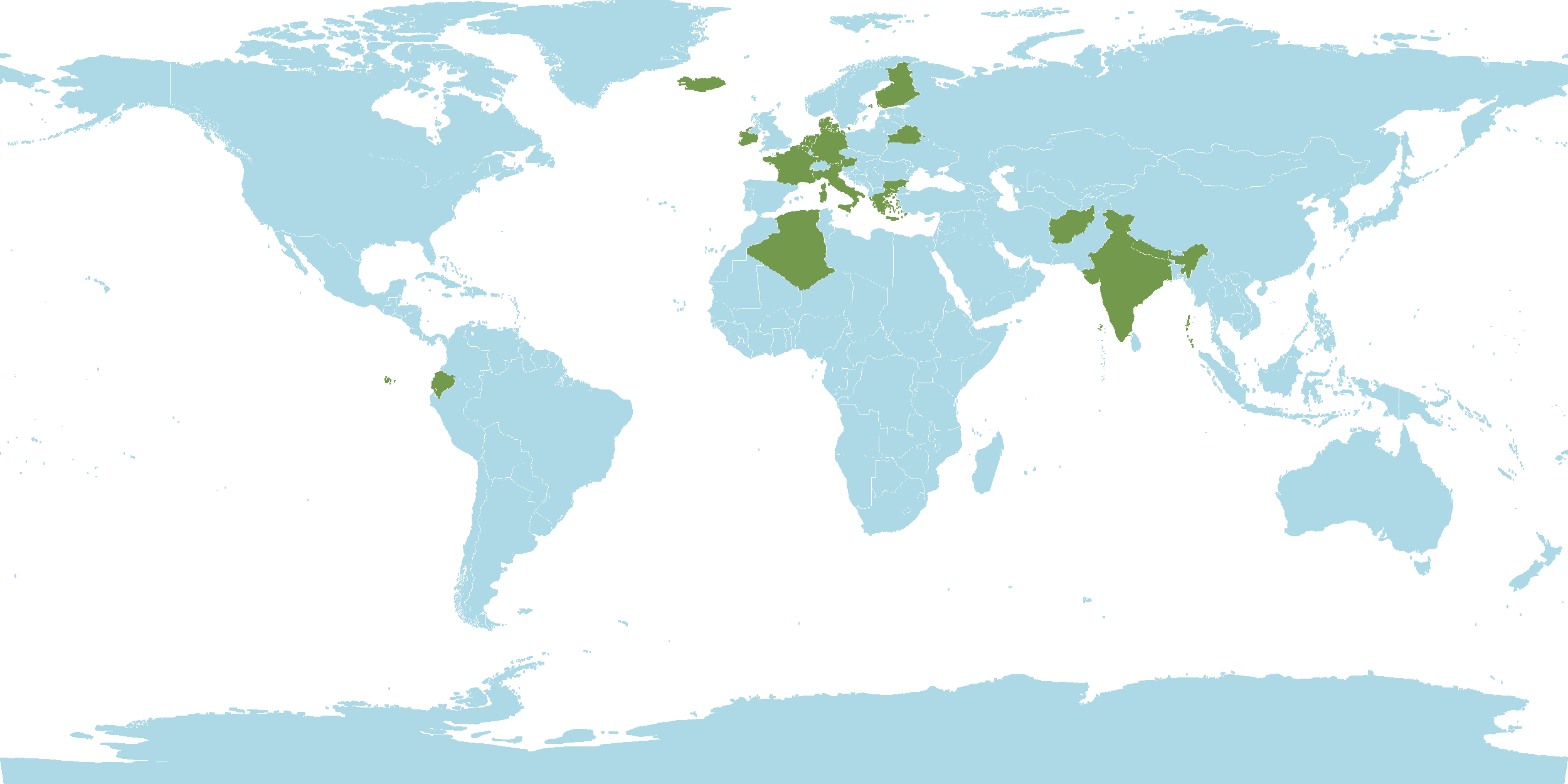 - Native : Afghanistan, Algeria, Austria, Baltic States, Belarus, Belgium, Bulgaria, Czechoslovakia, Denmark, European Russia, Finland, France, Føroyar, Germany, Great Britain, Greece, Iceland, India, Ireland, Italy, Kirgizstan, Nepal, Netherlands, North Caucasus,