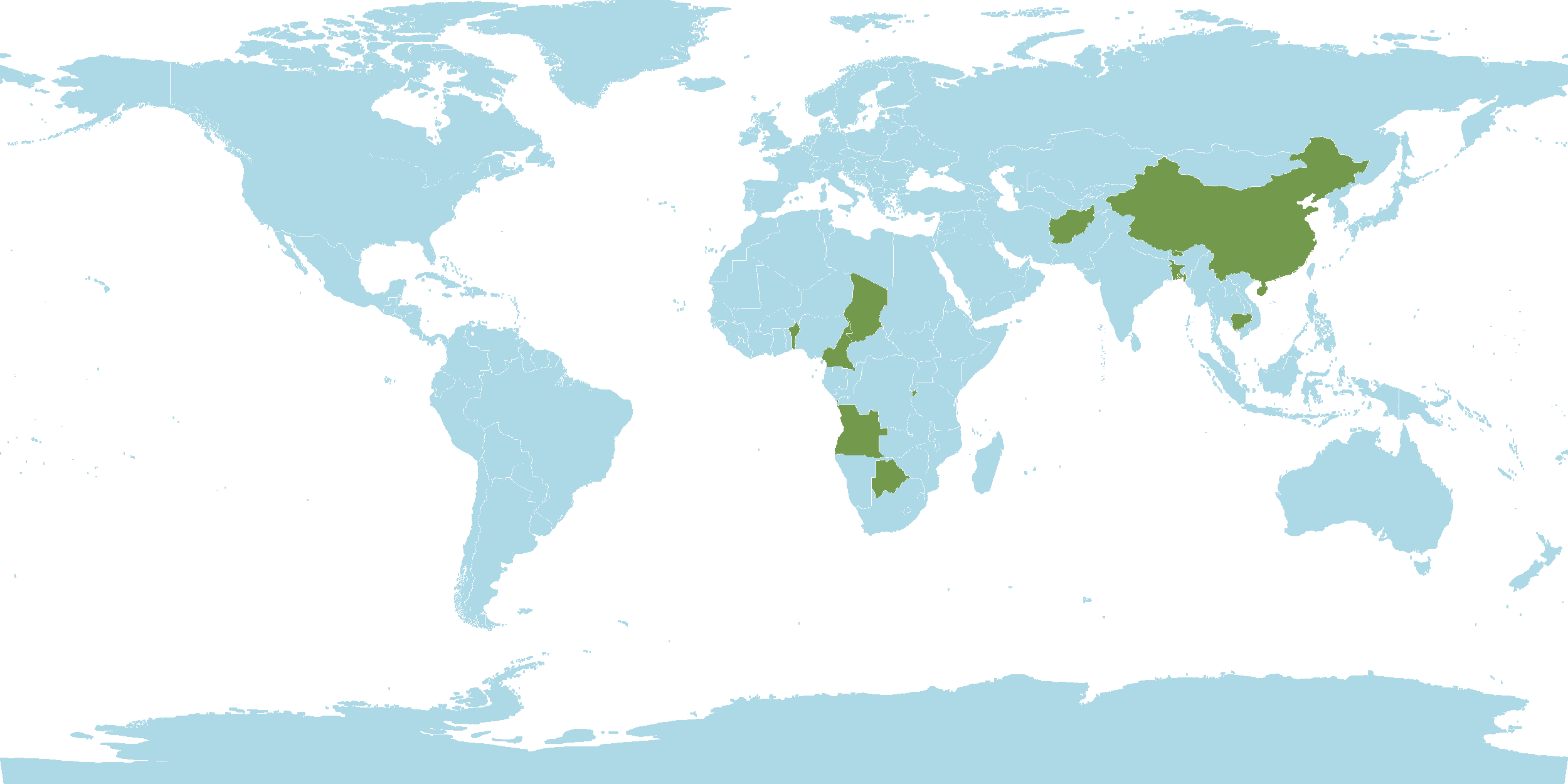 - Native : Afghanistan, Aldabra, Andaman and Nicobar Islands, Angola, Bangladesh, Benin, Bhutan, Bismarck Archipelago, Borneo, Botswana, Burkina, Burundi, Cambodia, Cameroon, Cape Provinces, Central African Repu, Chad, China, Christmas Island, Cocos (Keeling) Island