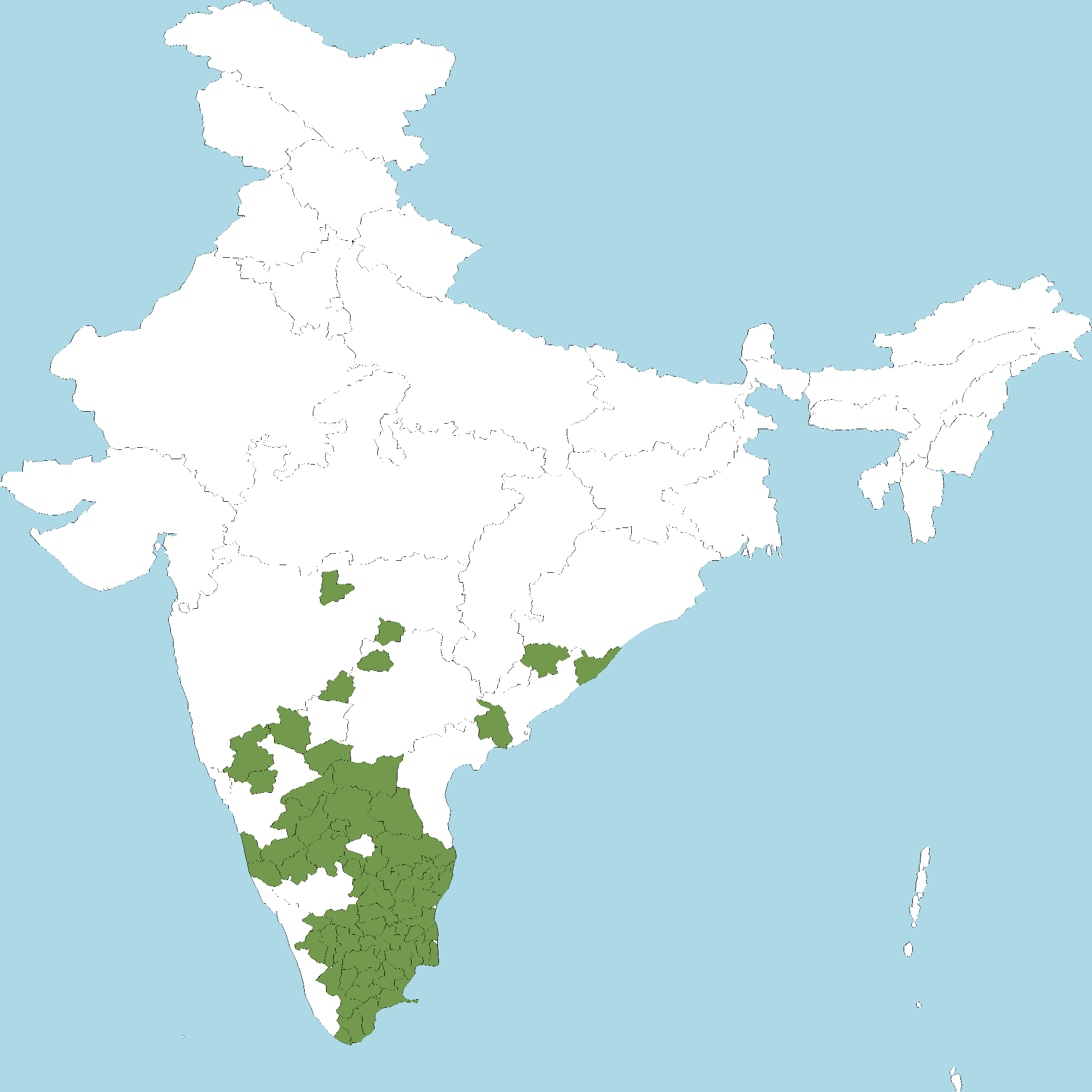 - Tamil Nadu : All districts of Tamil Nadu