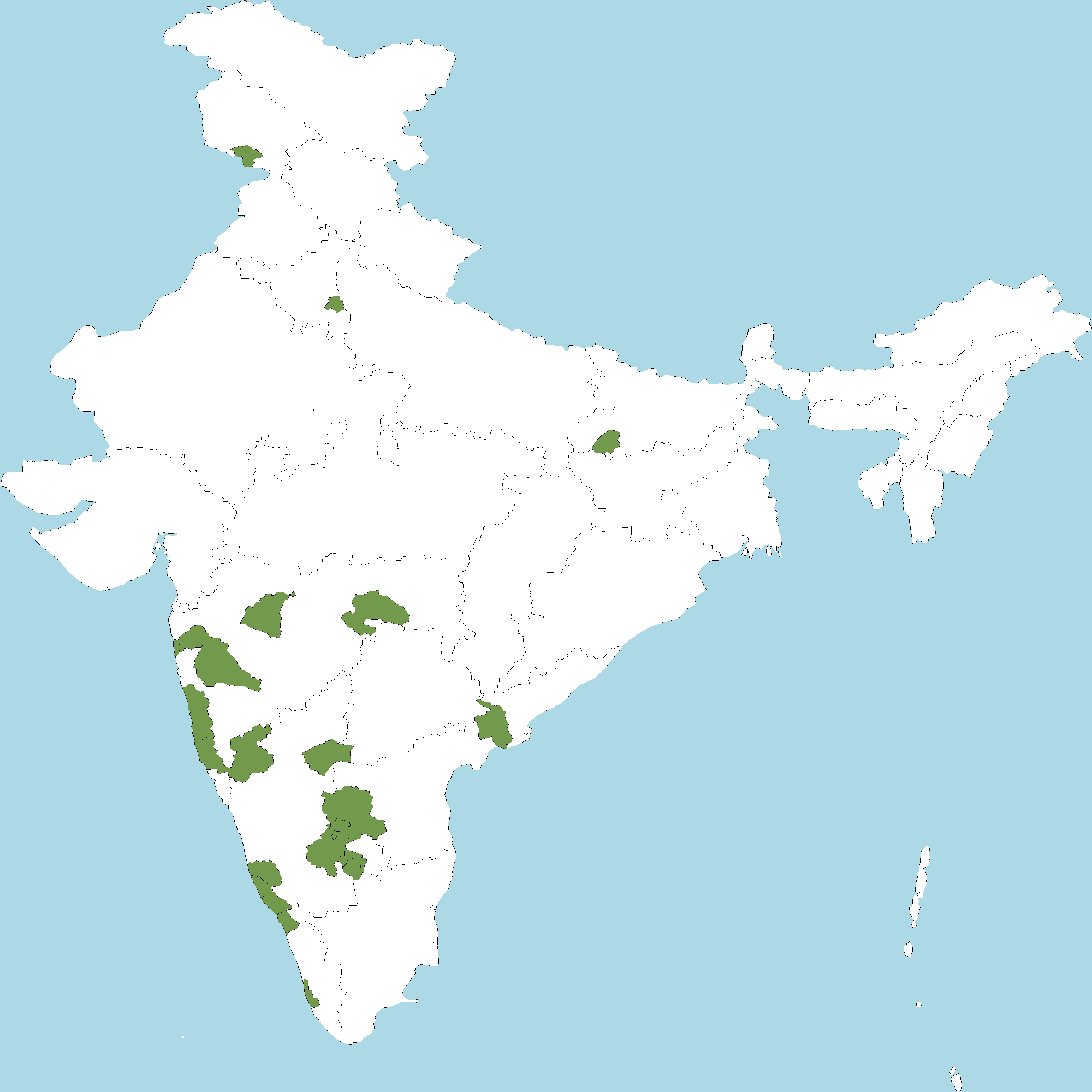 - Kerala : Kasaragod district, Kannur district, Kozhikode district, Alappuzha district