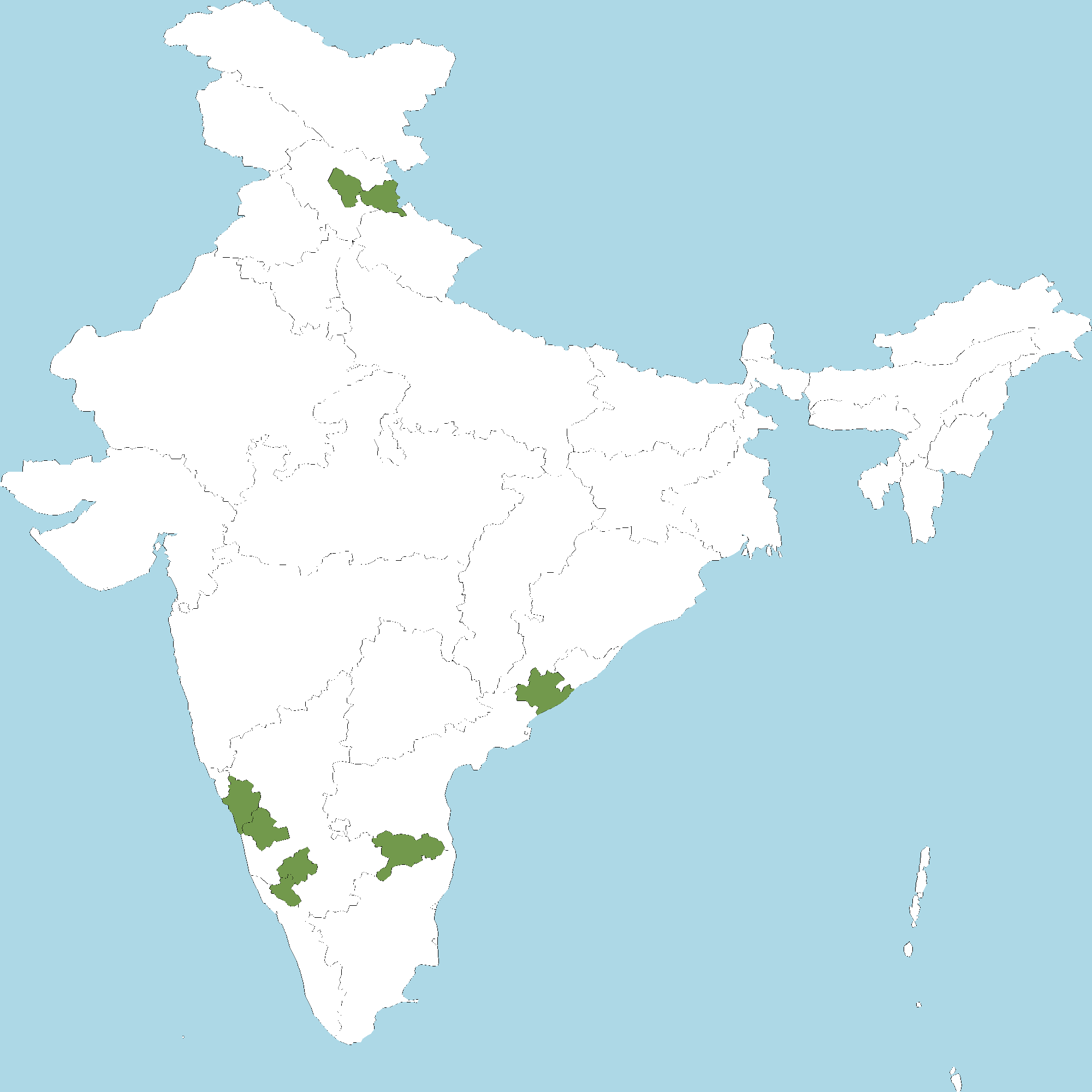 • Karnataka : Kodagu (Coorg) district, Shivamogga district, Uttara Kannada district, Hassan district