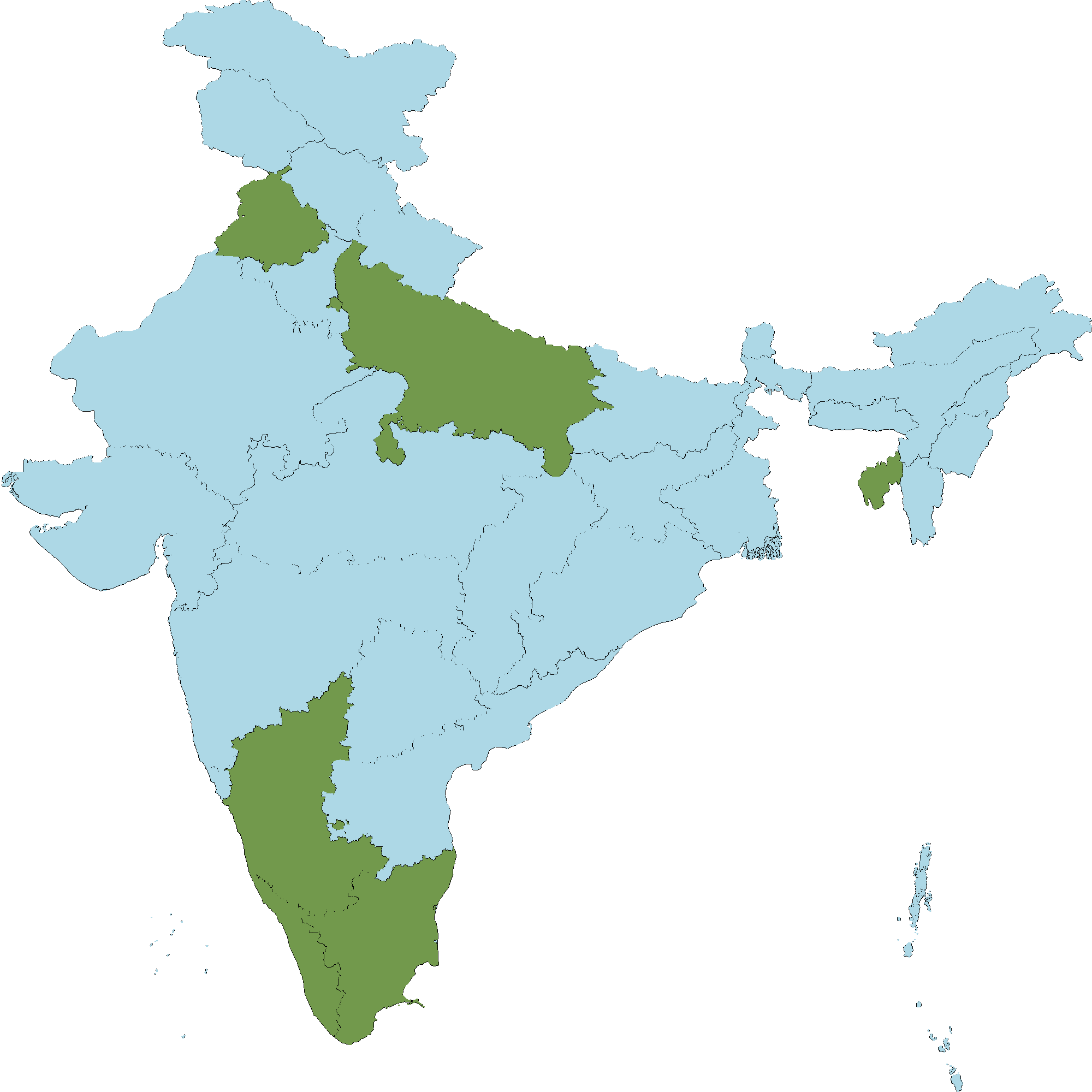 • Tamil Nadu : Dharmapuri district, Dindigul district, Namakkal district, The Nilgiri district, Salem district, Tirunelveli district