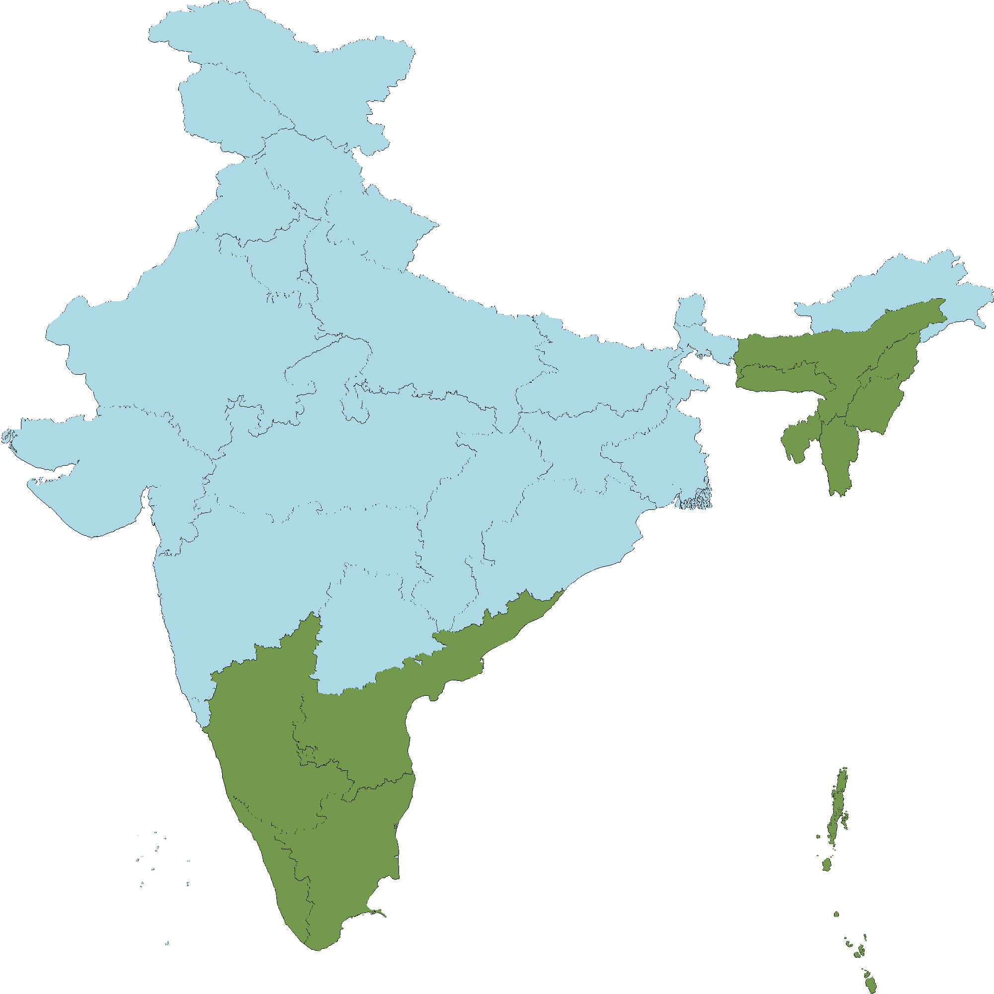 - Kerala : Kannur district, Wayanad district, Malappuram district, Thrissur district, Idukki district, Kollam district