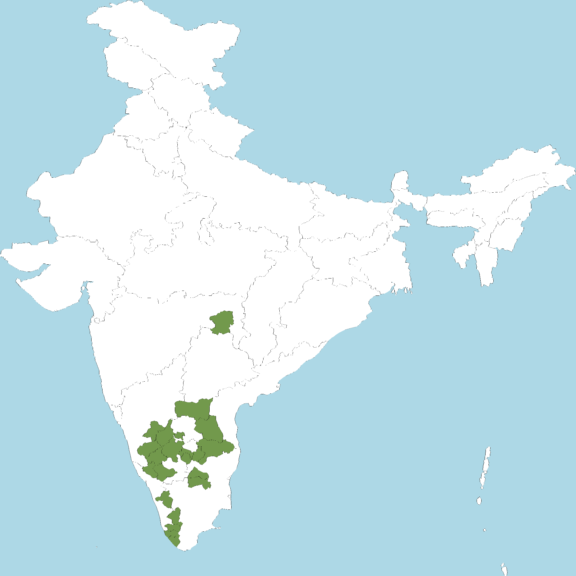 - Karnataka : Bengaluru Urban district, Bengaluru Rural district, Chikkamagaluru district, Chitradurga district, Davanagere district, Hassan district, Kodagu (Coorg) district, Kolar district, Mysuru district, Tumakuru district