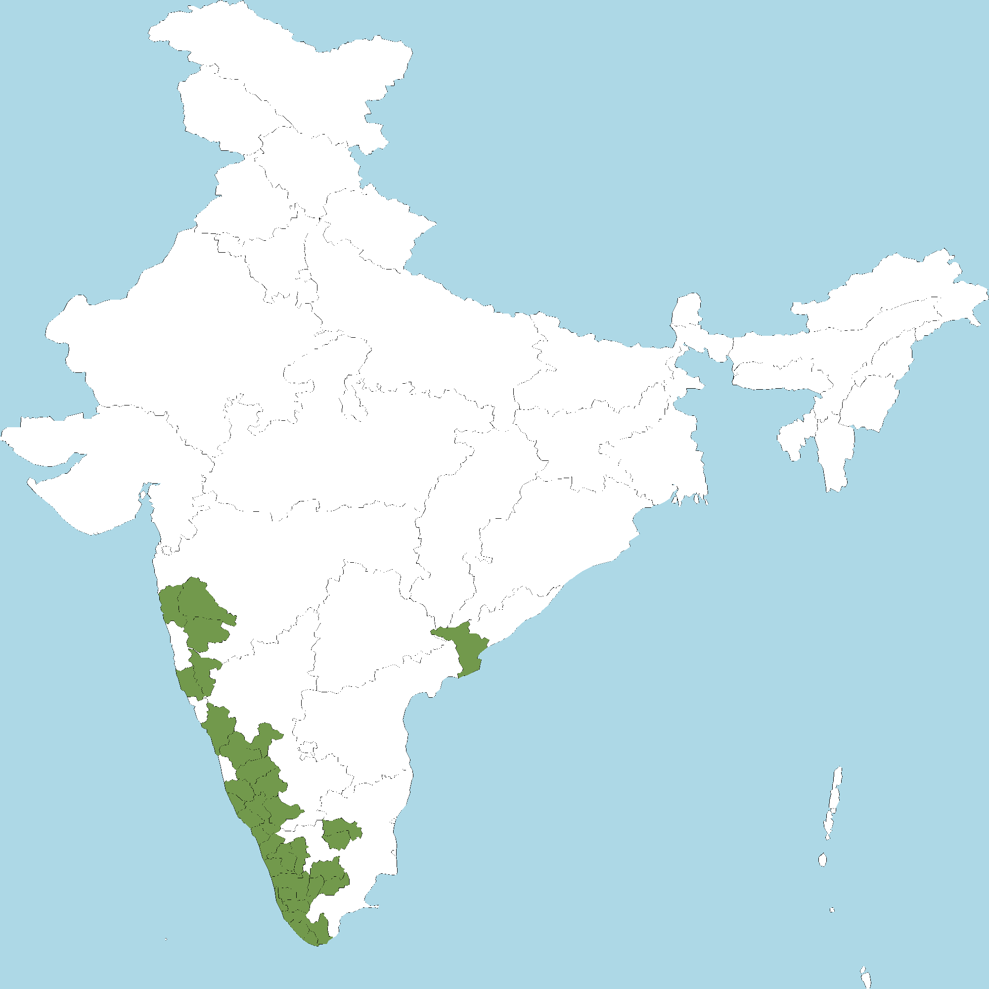 - Kerala : All districts of Kerala