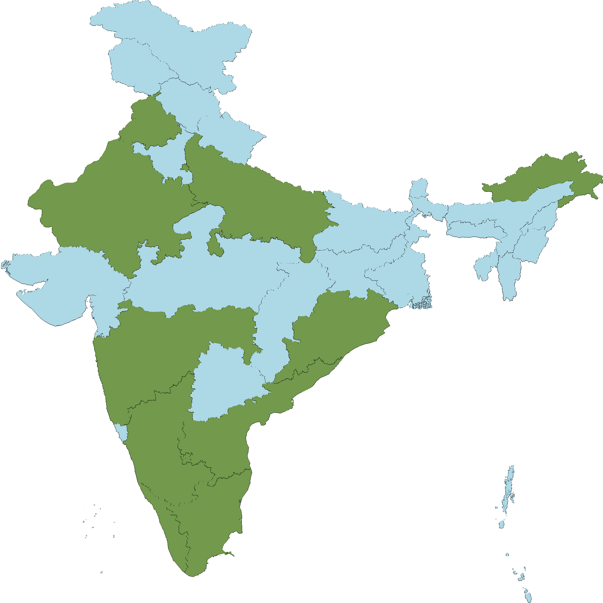- Karnataka : Bengaluru district, Ballari district, Bidar district, Vijayapura (Bijapur) district, Chikkamagaluru district, Dakshina Kannada district, Davanagare district, Dharwad district, Kodagu (Coorg) district, Tumakuru district