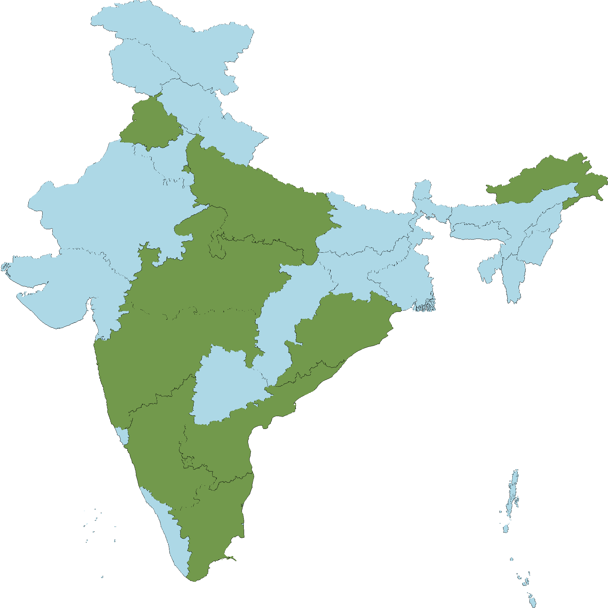 - Karnataka : Bengaluru district, Bidar district, Chikkamagaluru district, Dakshina Kannada district, Davanagare district, Hassan district, Kolar district, Mysuru district, Raichur district, Shivamogga district, Tumakuru district, Uttara Kannada district