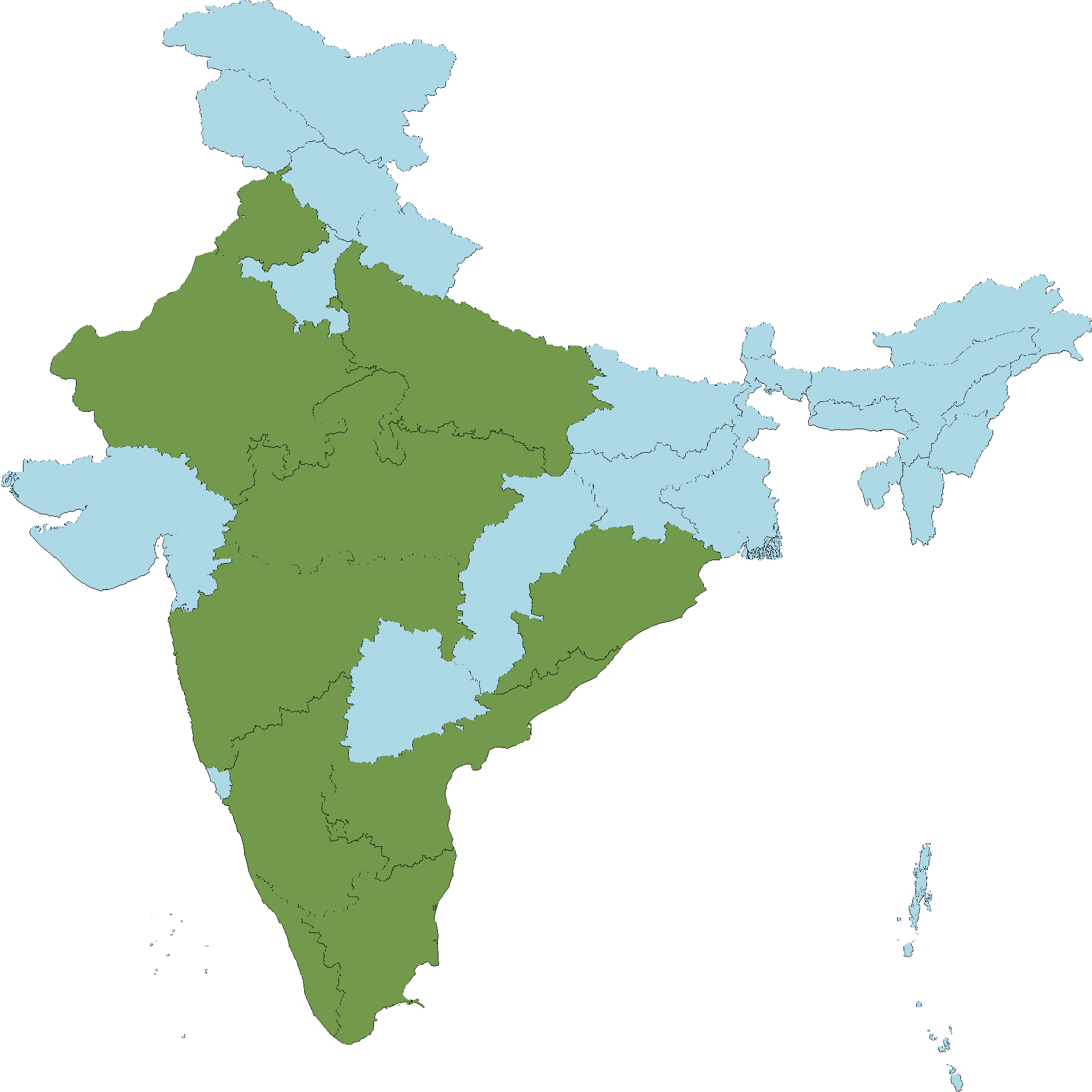 - Karnataka : Bengaluru district, Belagavi district, Ballari district, Bidar district, Vijayapura (Bijapur) district, Chikkamagaluru district, Chitradurga district, Dakshina Kannada district, Davanagare district, Dharwad district, Kalaburagi (Gulbarga) district, Hassan district, Kodagu (Coorg) district, Kolar district, Mysuru district, Raichur district, Shivamogga district, Tumakuru district, Uttara Kannada district, Udupi district