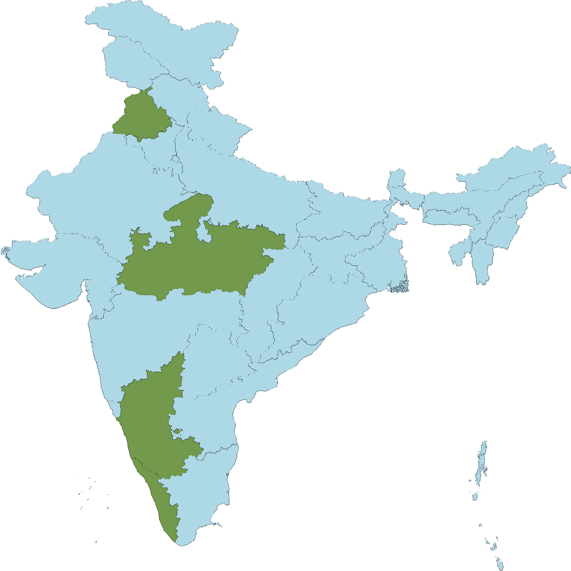 • Karnataka : Belagavi district, Chikkamagaluru district, Dakshina Kannada district, Davanagere district, Hassan district, Mysuru district, Shivamogga district, Uttara Kannada district, Udupi district