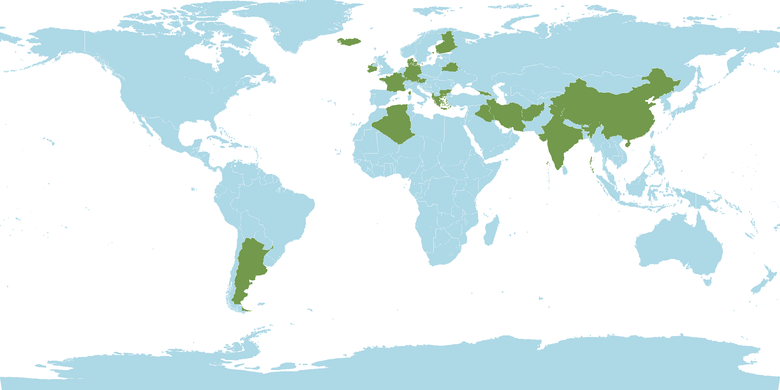 - Native : Afghanistan, Albania, Altay, Austria, Azores, Baltic States, Belarus, Belgium, Bulgaria, Buryatiya, Corse, Czechoslovakia, Denmark, European Russia, Finland, France, Føroyar, Germany, Great Britain, Greece, Iceland, India, Iran, Iraq, Ireland, Irkutsk, I