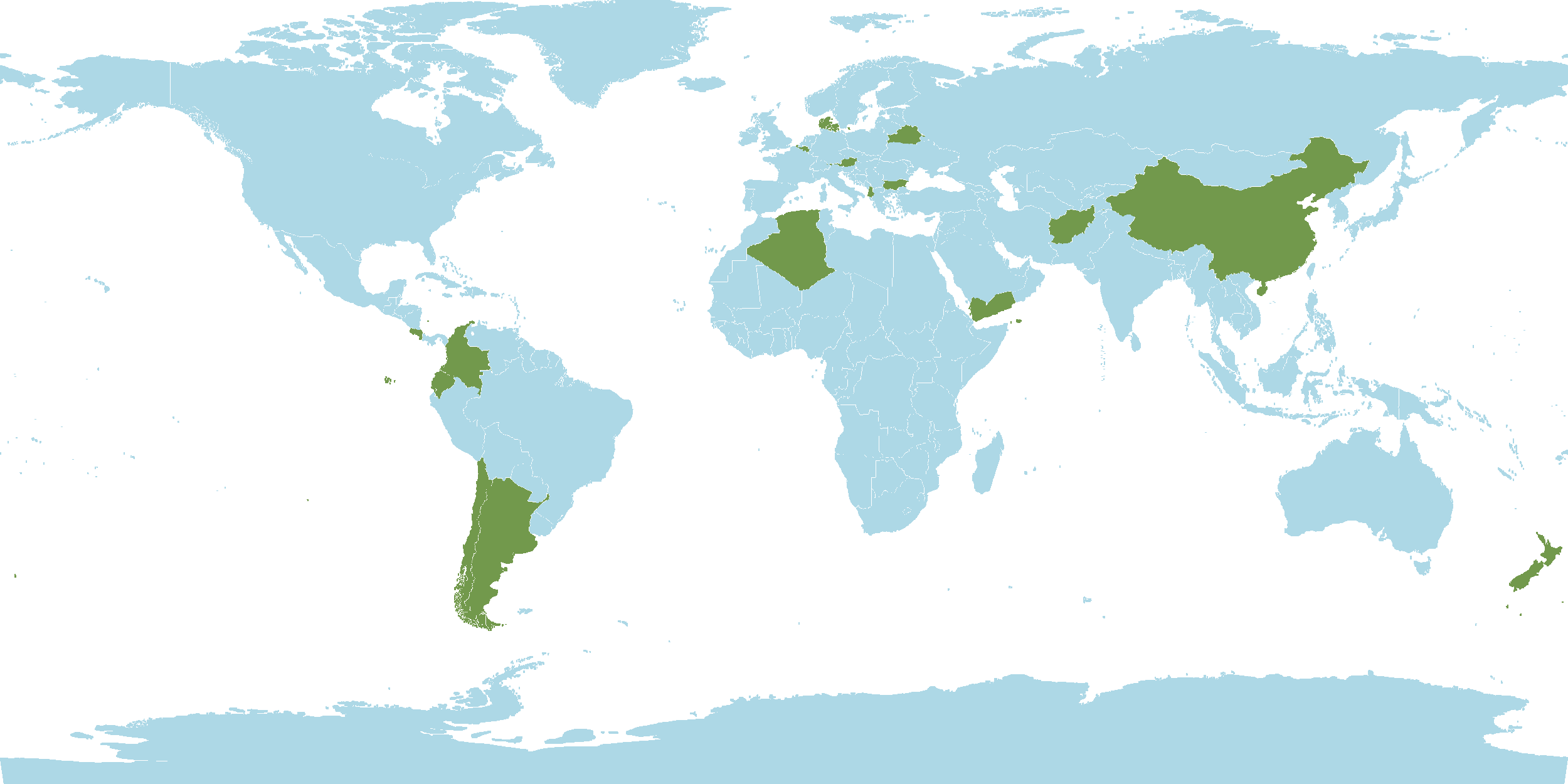 - Native : Afghanistan, Alabama, Alaska, Albania, Alberta, Aleutian Is., Algeria, Altay, Amur, Arizona, Austria, Baltic States, Belarus, Belgium, British Columbia, Bulgaria, Buryatiya, California, China, Chita, Connecticut, Corse, Czechoslovakia, Delaware, Denmark,