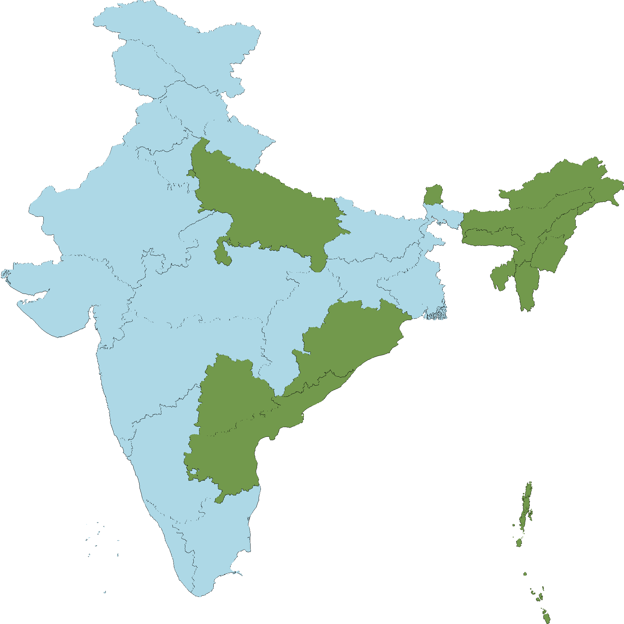- Andaman and Nicobar Islands : North and Middle Andaman,South Andaman,Ritchie\'s Archipelago taluk (Havelock Island),Long Island,Rutland Island