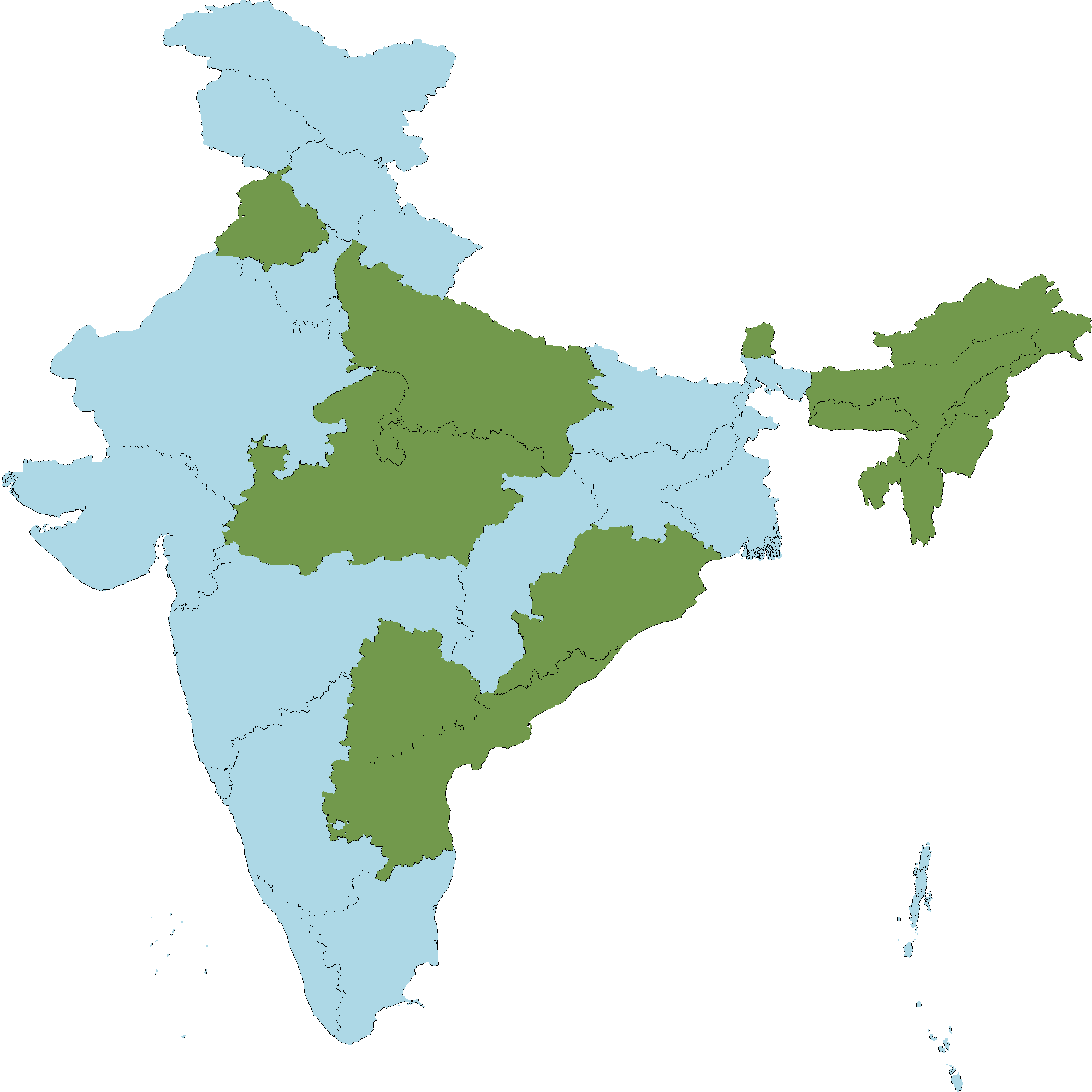 - Andhra Pradesh : Anantapur district, Chittoor district, Kadapa district, East Godavari district, Guntur district, Krishna district, Kurnool district, Nellore district, Prakasam district, Srikakulam district, Vishakapatnam district, Vizianagaram district, West Godavari district