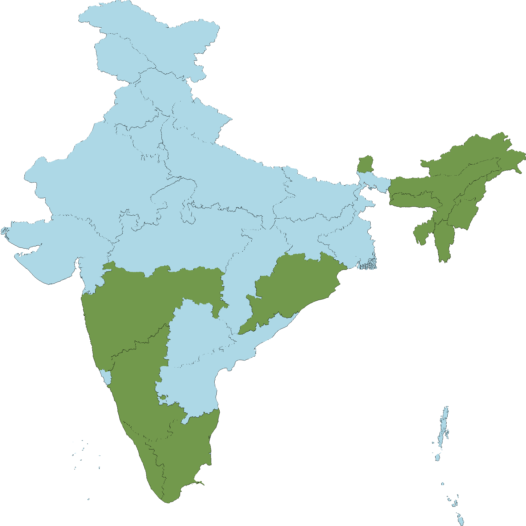 - Karnataka : Dakshina Kannada district, Davanagare district, Dharwad district, Hassan district, Shivamogga district, Udupi district, Uttara Kannada district