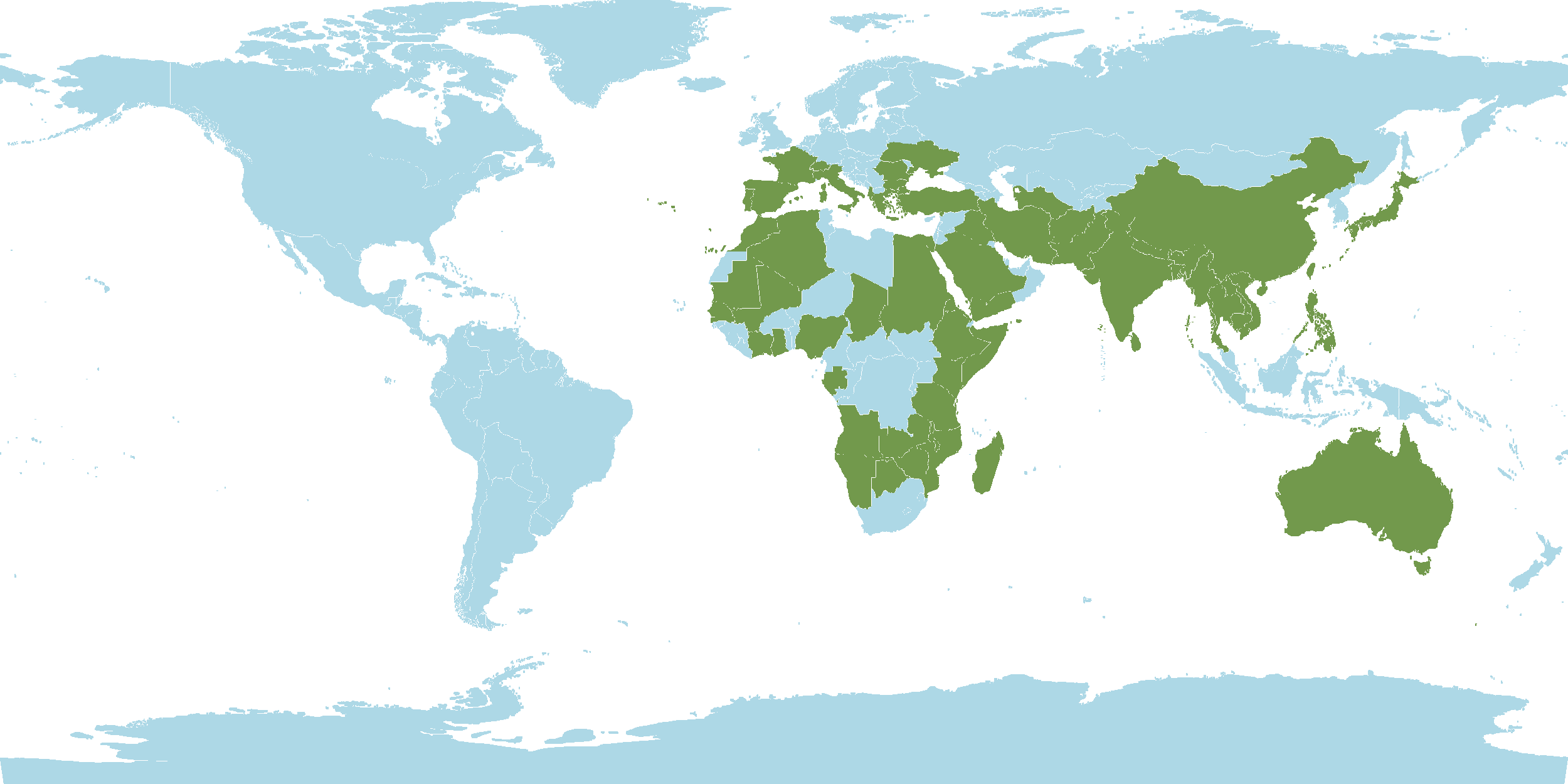 - World Distribution : Afghanistan, Albania, Algeria, Angola, Australia, Bangladesh, Bhutan, Botswana, Bulgaria, Burkina, Cambodia, Canary Islands, Cape Provinces, Central African Repu, Chad, China, East Aegean Islands, Egypt, Eritrea, Ethiopia, France, Gabon, Ghana, Greece, India, Iran, Iraq, Italy, Ivory Coast, Japan, Jawa, Kenya, KwaZulu-Natal, Laos, Lebanon-Syria, Madagascar, Malawi, Mali, Mauritania, Morocco, Mozambique, Myanmar, Namibia, Nansei-shoto, Nepal, Nigeria, Northern Provinces, Ogasawara-shoto, Pakistan, Palestine, Philippines, Portugal, Romania, Saudi Arabia, Senegal, Sicilia, Somalia, Spain, Sri Lanka, Sudan, Switzerland, Taiwan, Tanzania, Thailand, Transcaucasus, Turkey, Turkey-in-Europe, Turkmenistan, Ukraine, Vietnam, Xinjiang, Yemen, Yugoslavia, Zambia, Zimbabwe