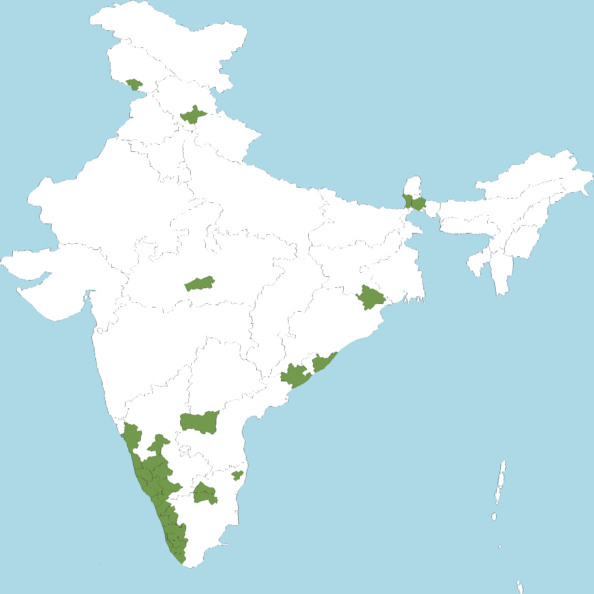 - Kerala : All districts of Kerala