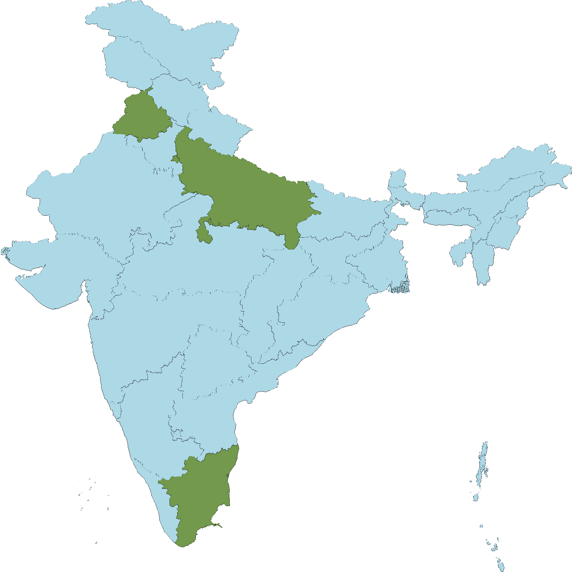 - Tamil Nadu : Dindigul district, The Nilgiri district, Salem district, Theni district