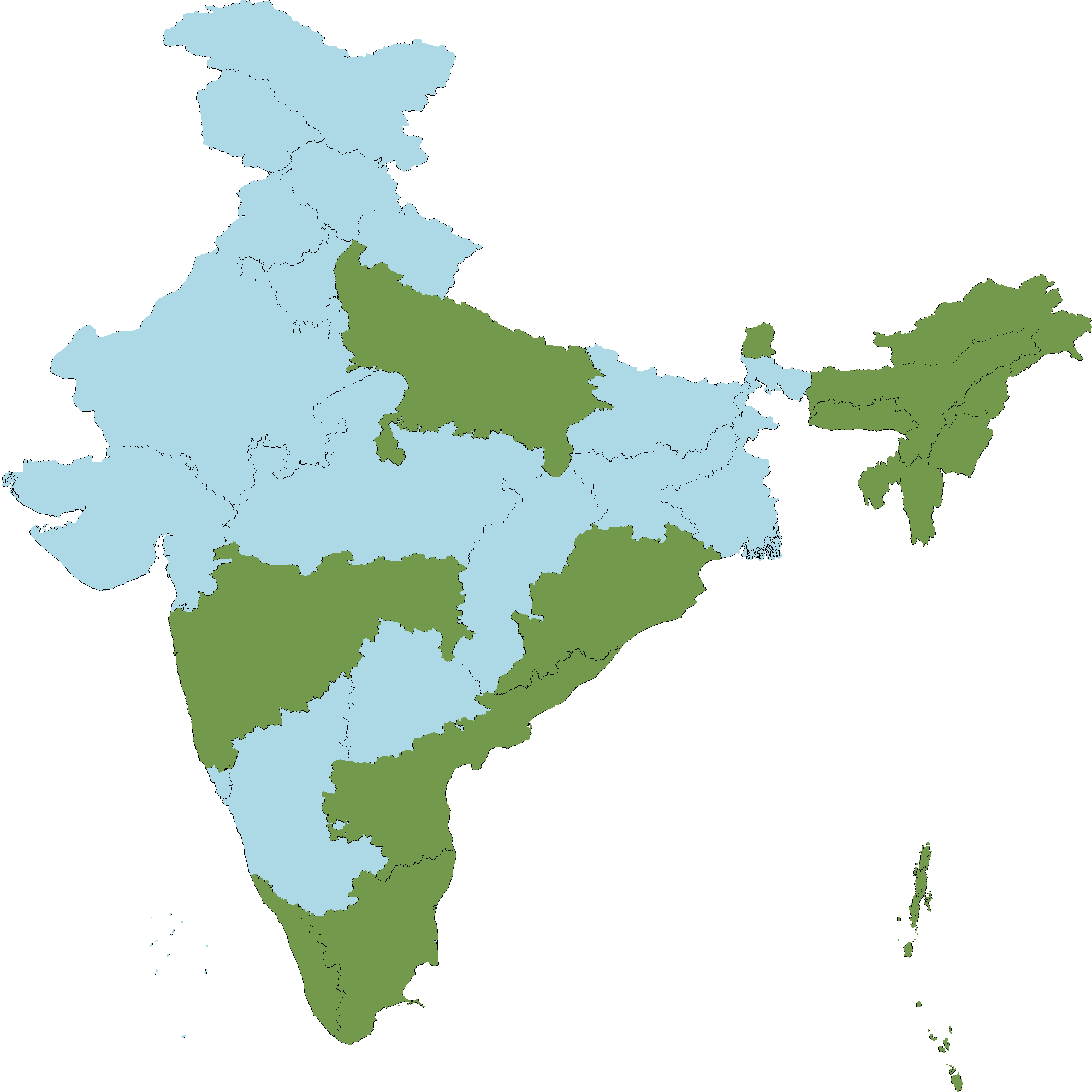 - Kerala : Malappuram district, Palakkad district, Alappuzha district, Thiruvananthapuram district