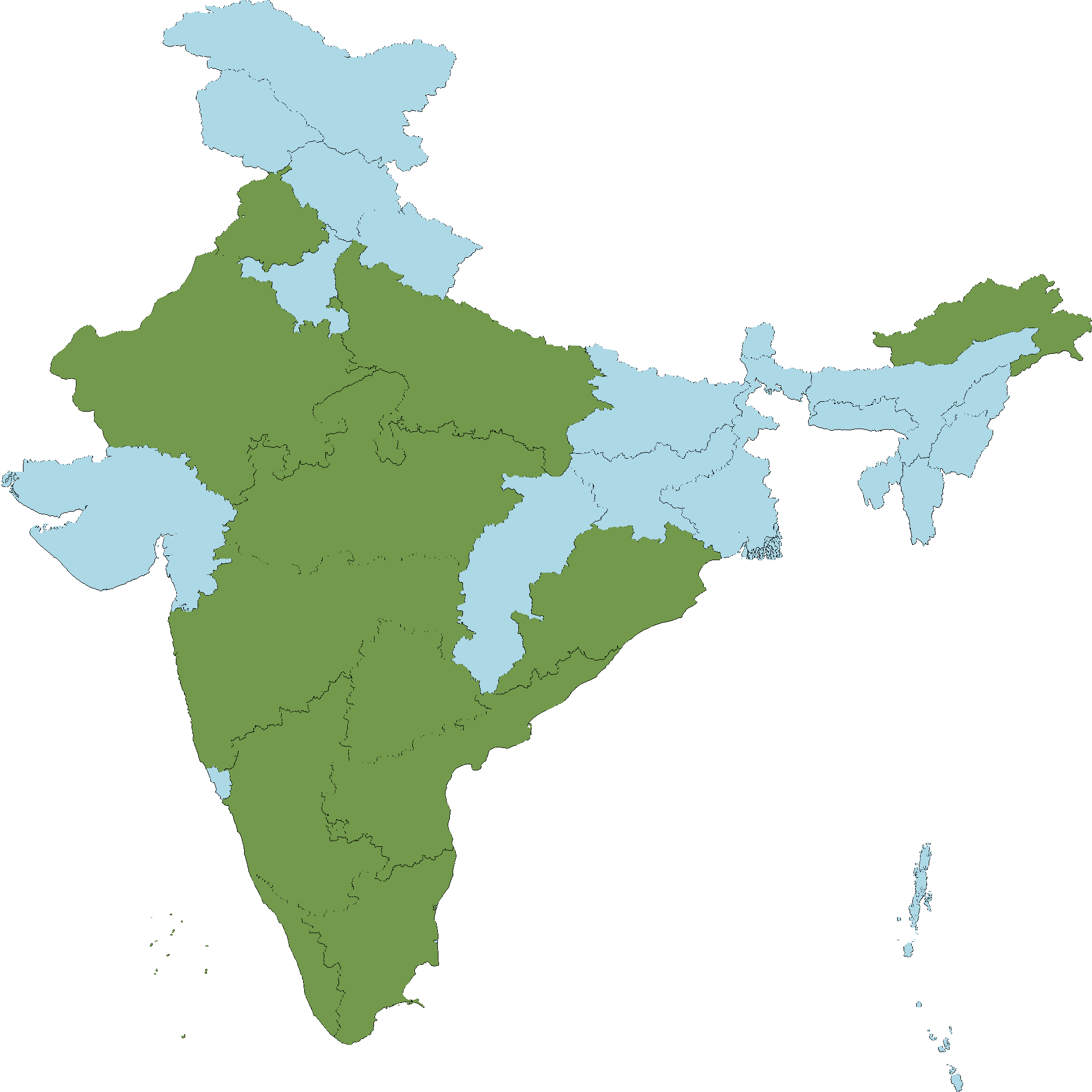 - Andhra Pradesh : Anantapur district, Chittoor district, Kadapa district, East Godavari district, Guntur district, Krishna district, Kurnool district, Nellore district, Prakasam district, Srikakulam district, Vishakapatnam district, Vizianagaram district, West Godavari district