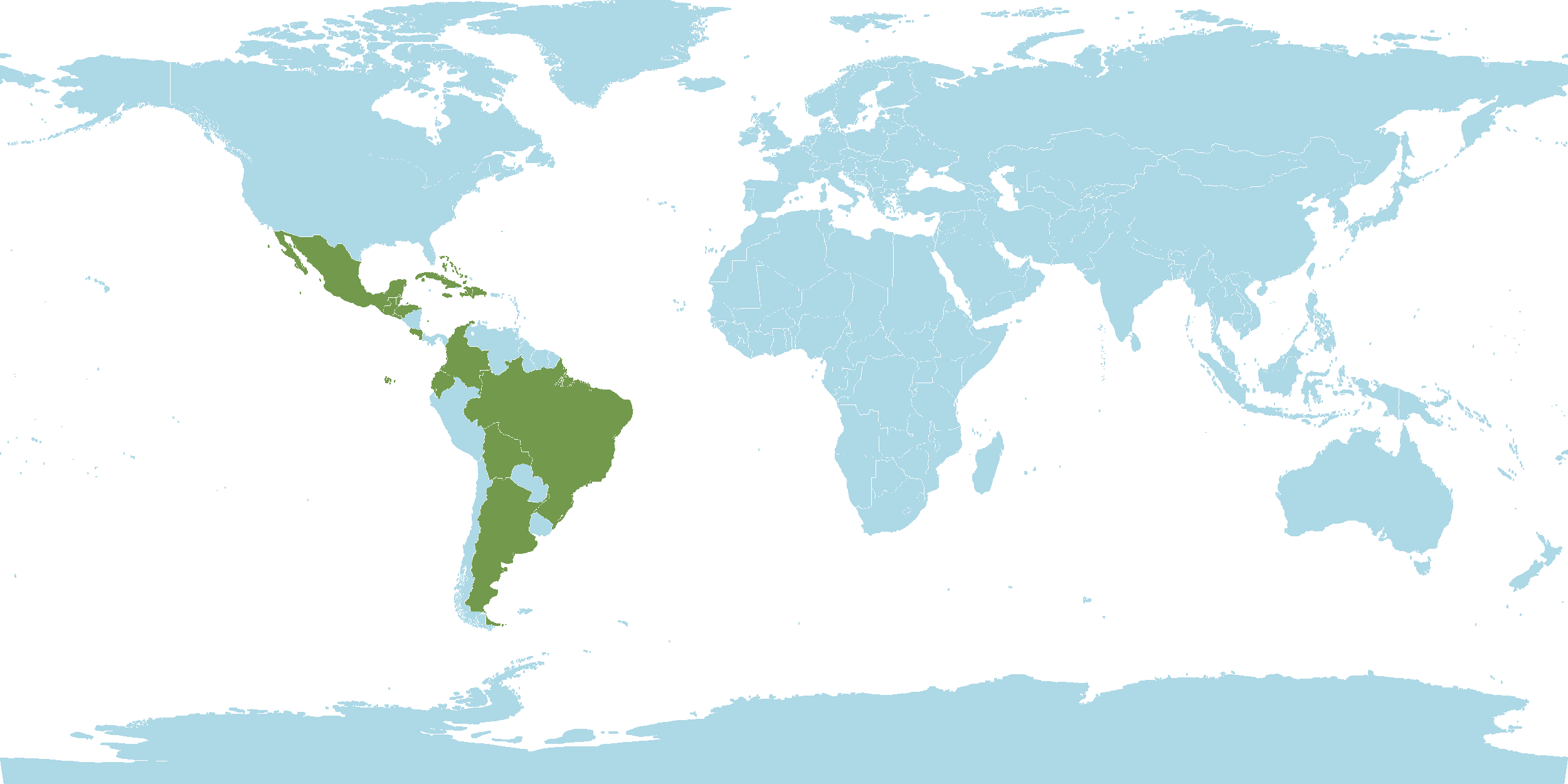- Native : Argentina, Aruba, Bahamas, Belize, Bolivia, Brazil, Cayman Islands, Colombia, Costa Rica, Cuba, Dominican Republic, Ecuador, El Salvador, French Guiana, Galápagos, Guatemala, Haiti, Honduras, Jamaica, Leeward Islands, Mexico, Netherlands Antilles, Nicara