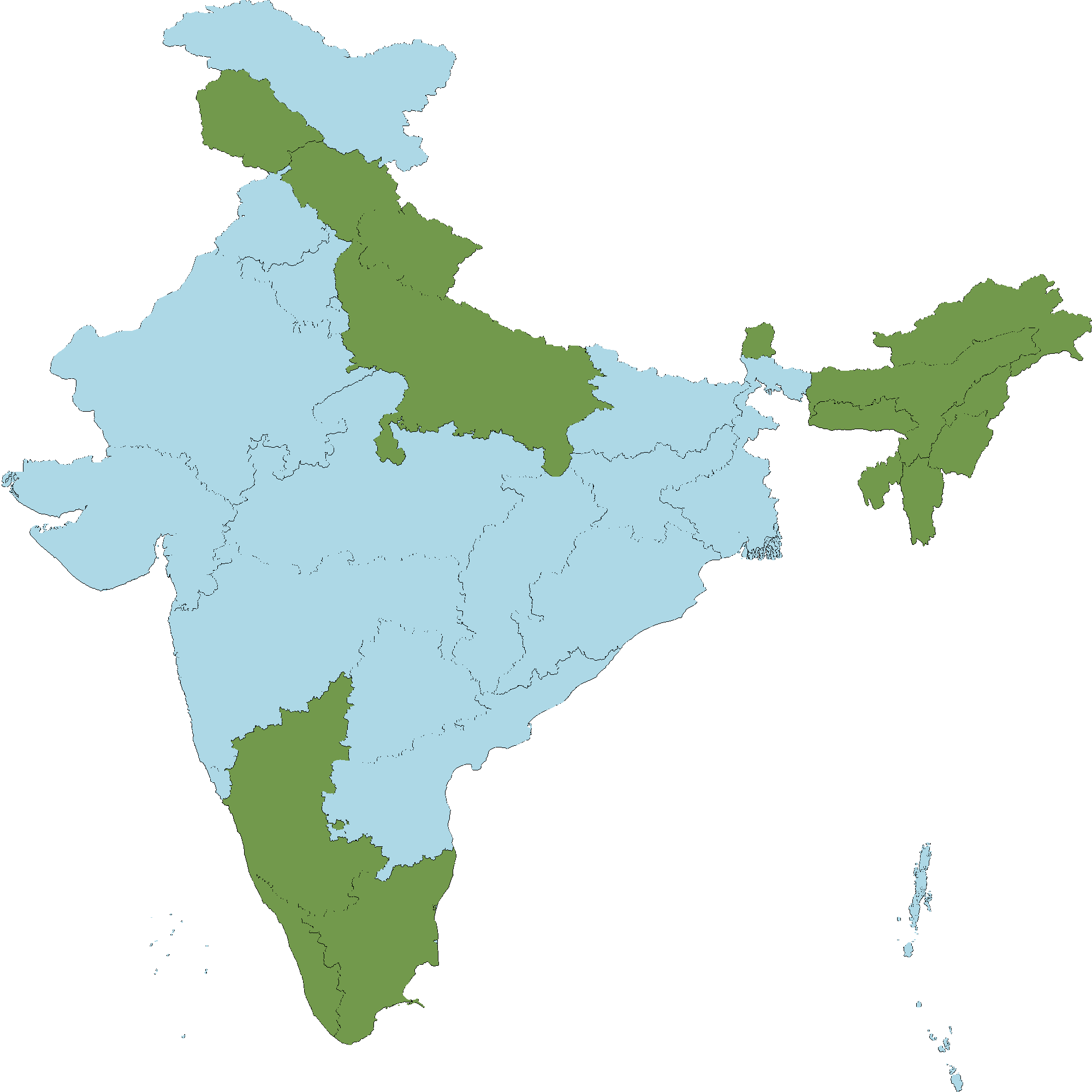 - Tamil Nadu : Madurai district, The Nilgiri district, Tiruchirapalli district