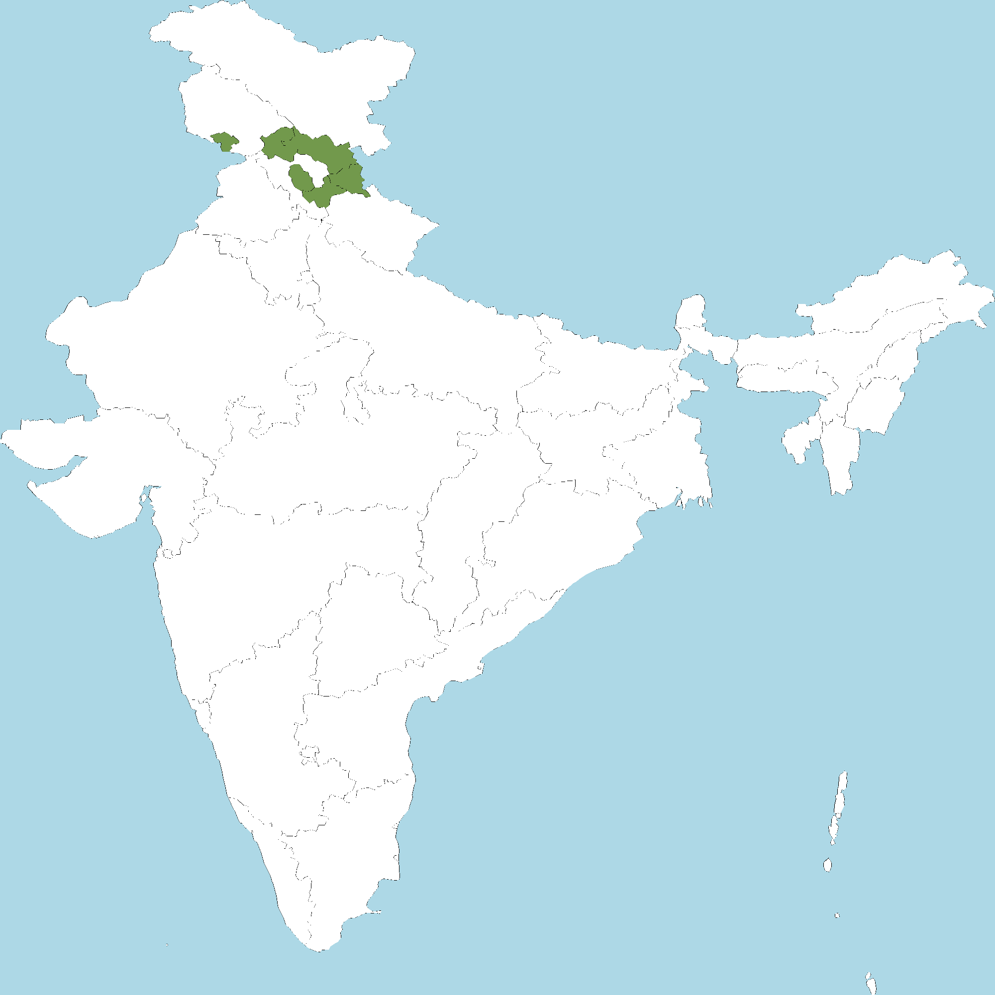 - Himachal Pradesh : Chamba district, Kinnaur district, Lahaul and Spiti district, Mandi district, Shimla district