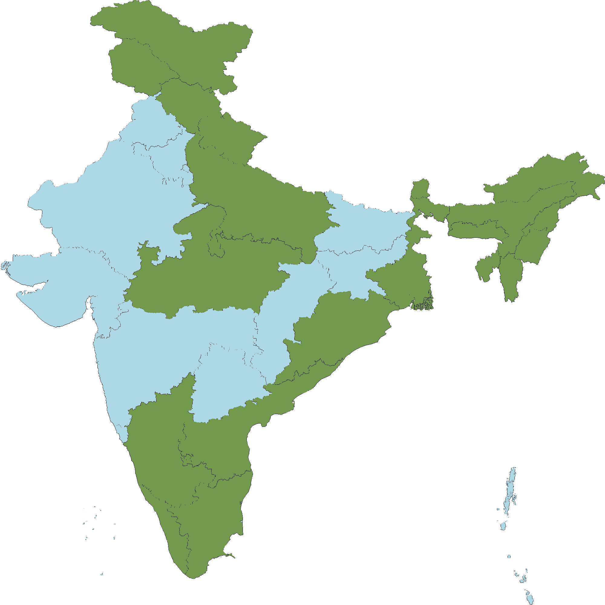 - Karnataka : Ballari district, Chikkamagaluru district, Dakshina Kannada district, Hassan district, Kodagu (Coorg) district, Mysuru district, Shivamogga district, Udupi district, Uttara Kannada district