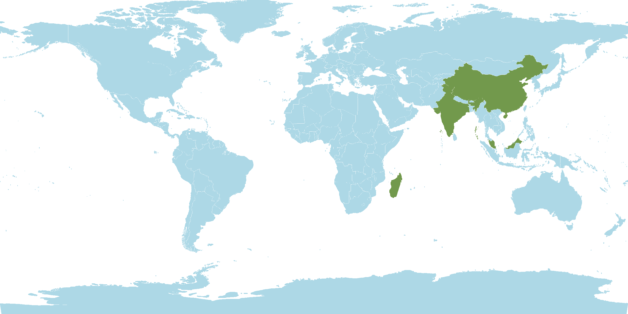 - World Distribution : Tropical Africa, Madagascar, India, China, Malaysia