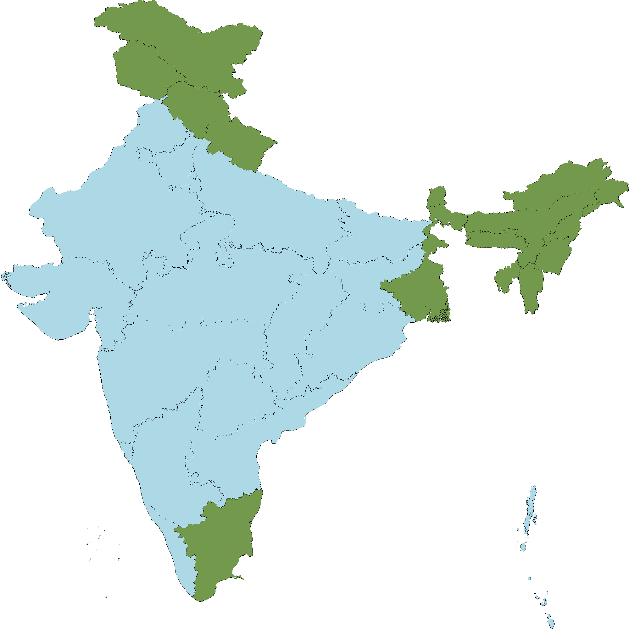 - West Bengal : Darjeeling district,Jalpaiguri district,Alipurduar district,Cooch Behar district