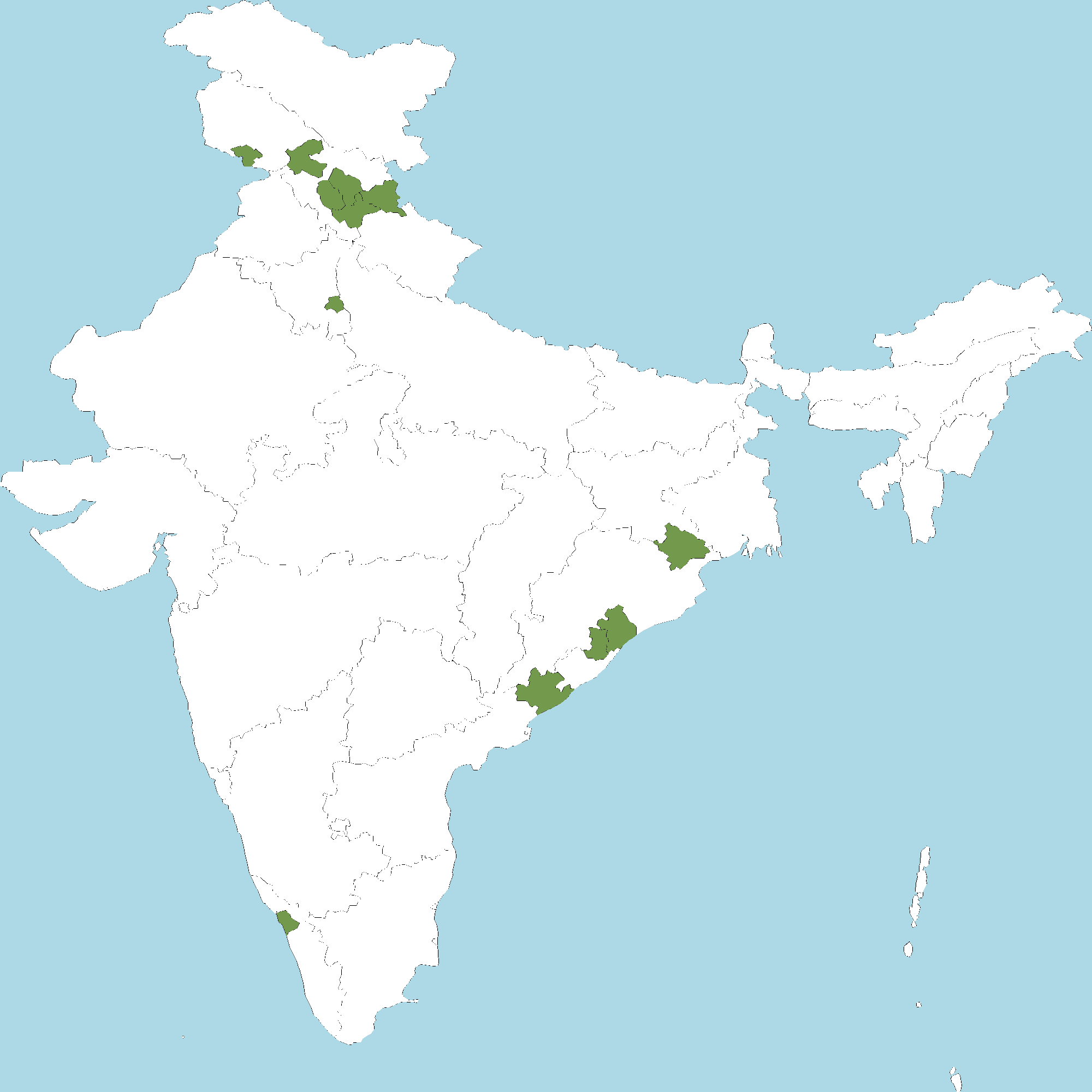 - Odisha : Gajapati district, Mayurbhanj district, Ganjam district