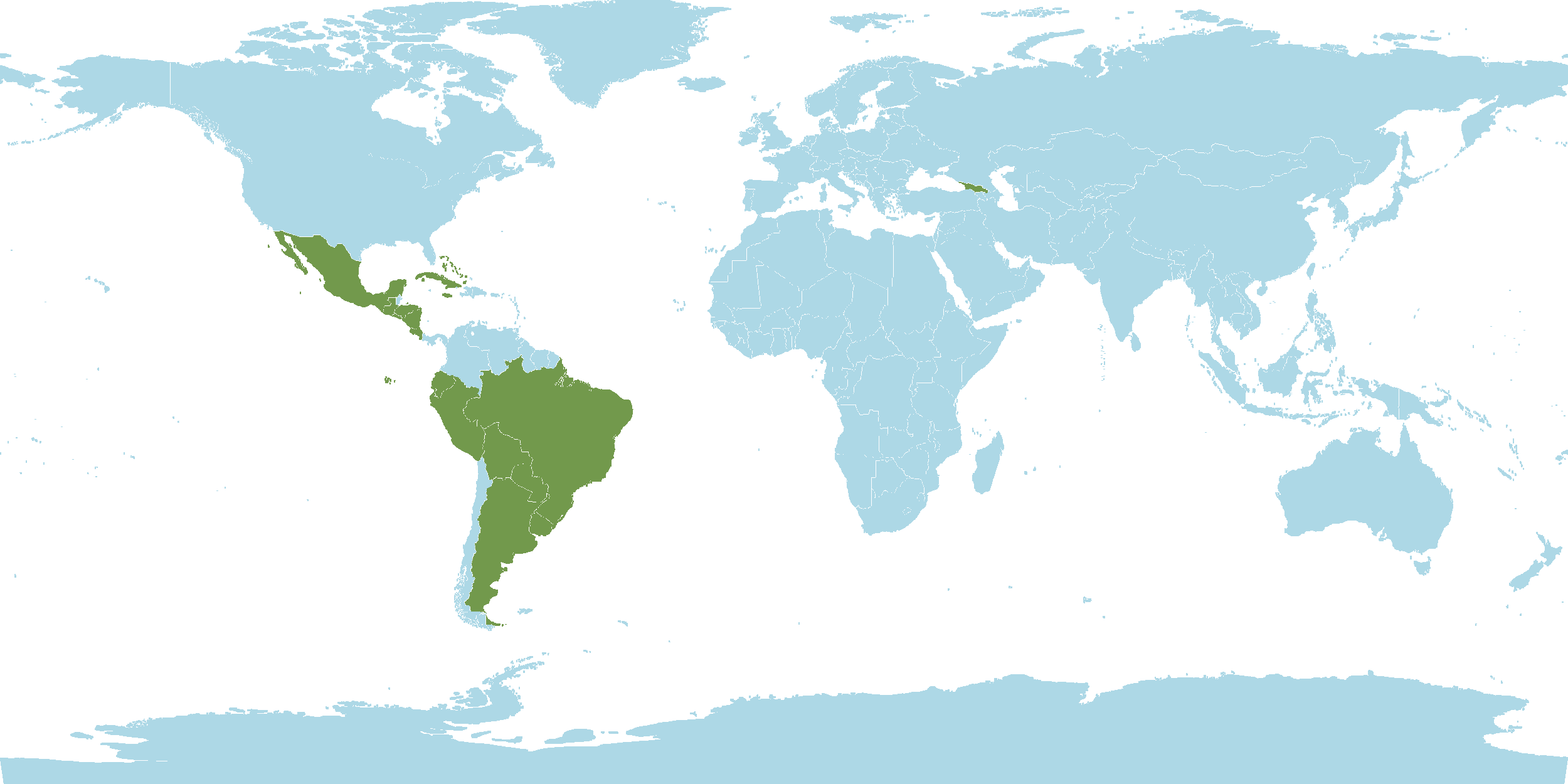 - World Distribution : Alabama, Argentina, Bahamas, Bolivia, Brazil, California, Costa Rica, Cuba, Ecuador, El Salvador, Florida, Georgia, Guatemala, Honduras, Jamaica, Louisiana, Maryland, Mexico, Mississippi, Nicaragua, North Carolina, Oklahoma, Panamá, Paraguay, Peru, South Carolina, Texas, Uruguay, Virginia