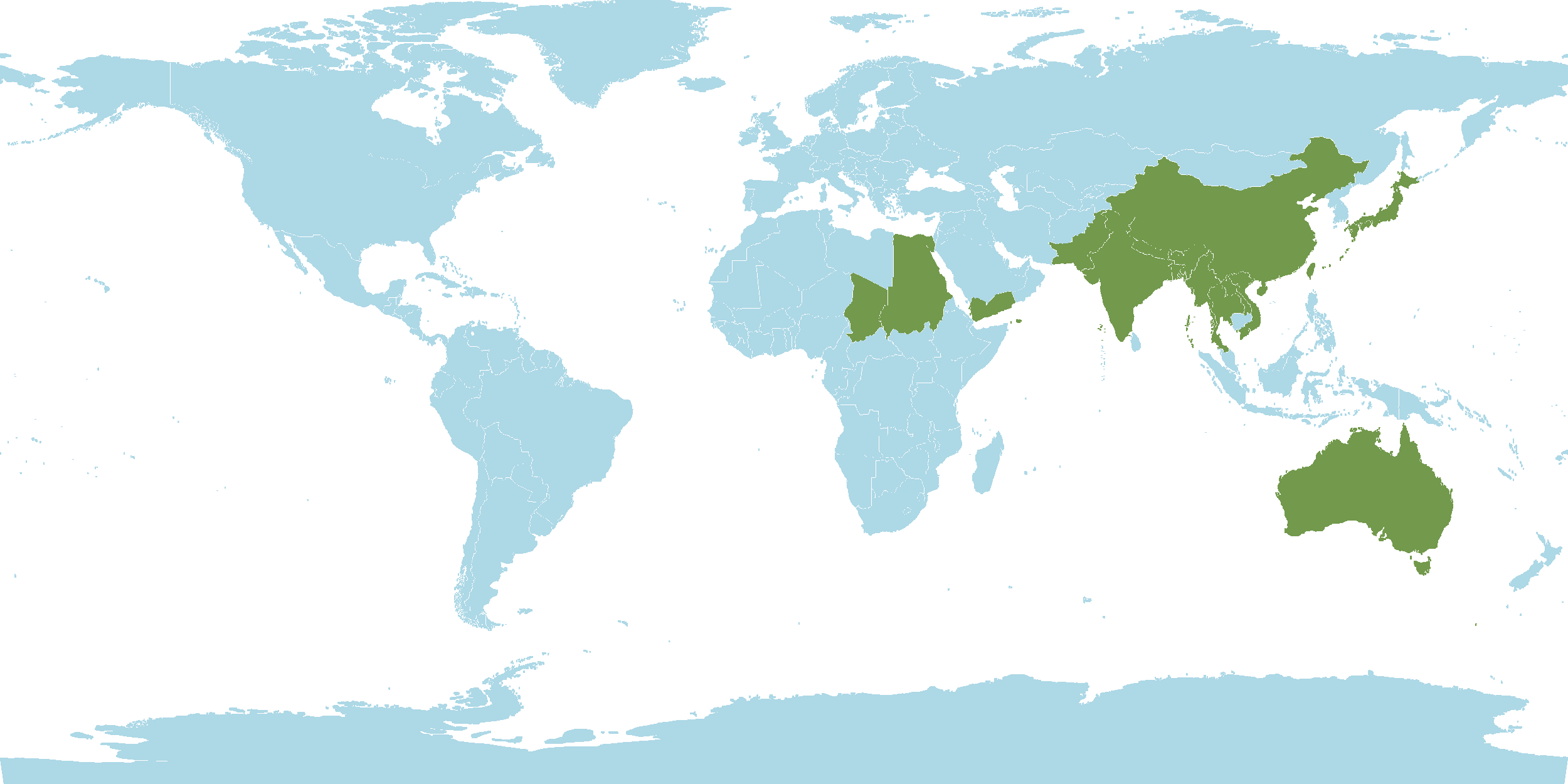 - Native : Australia, Bangladesh, Bhutan, Chad, China, Egypt, Hainan, India, Japan, Jawa, Laos, Malaya, Myanmar, Nepal, Pakistan, Sudan, Taiwan, Thailand, Vietnam, Yemen