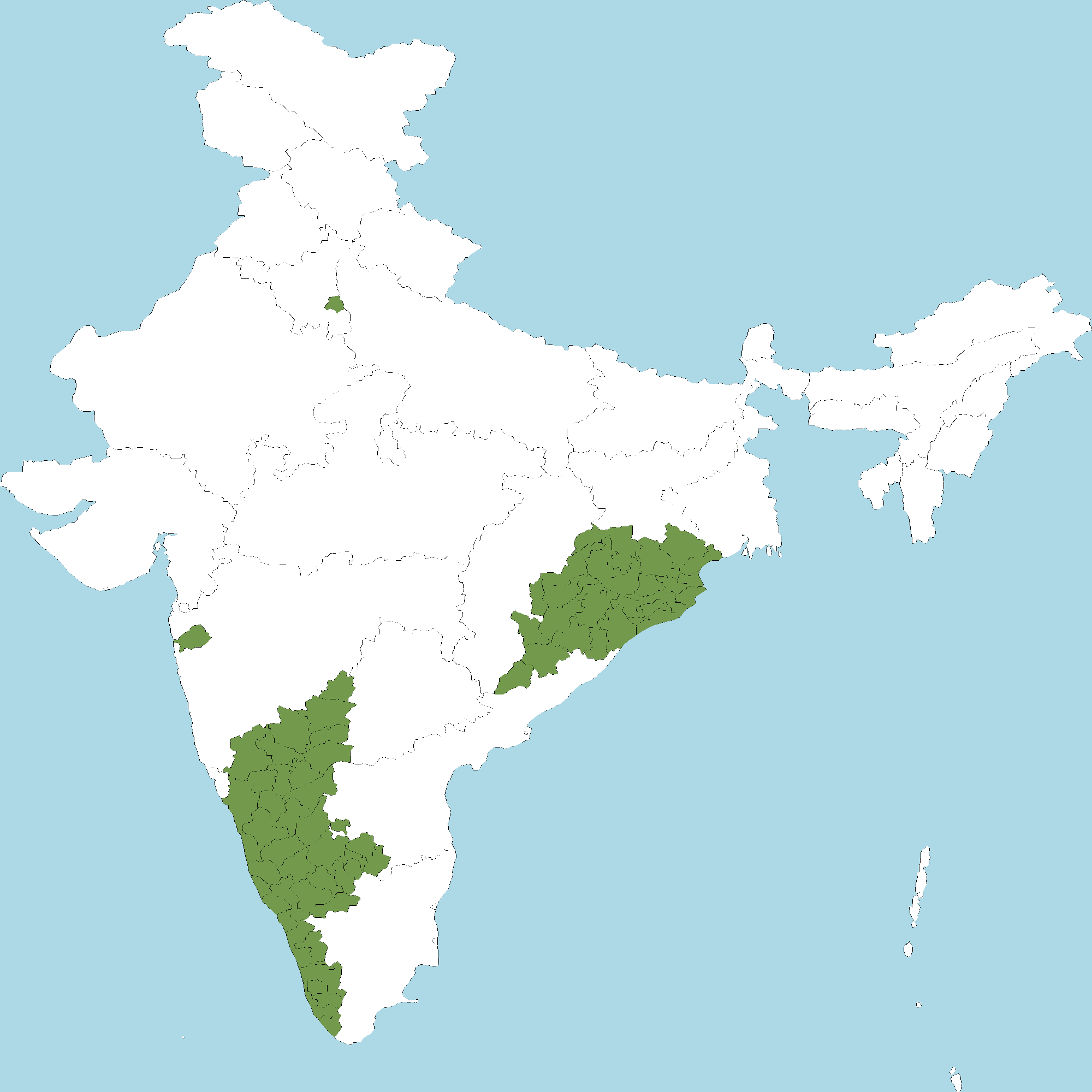 - Karnataka : All districts of Karnataka