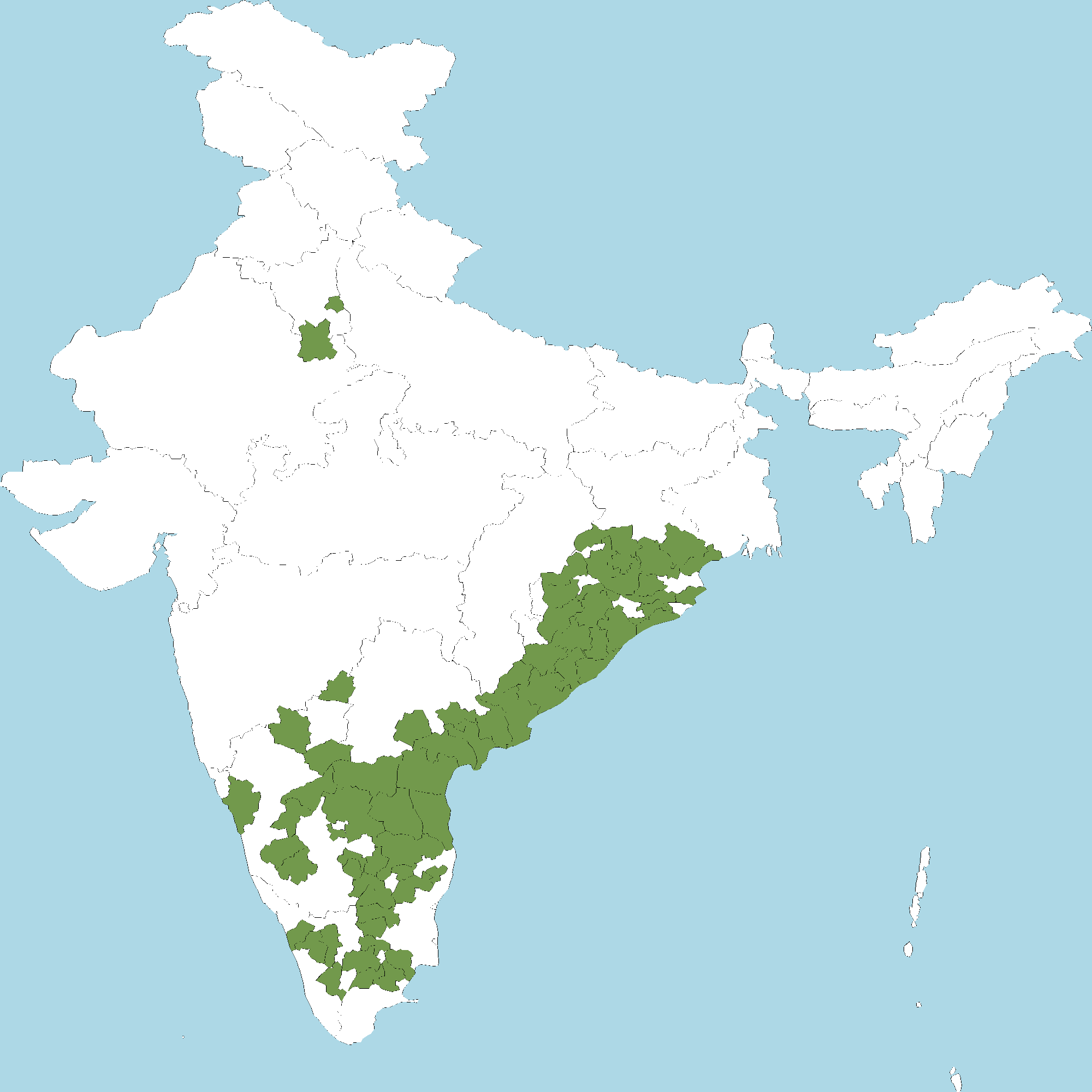 - Andhra Pradesh : Anantapur district, Chittoor district, Y.S.R. Kadapa district, East Godavari district, Guntur district, Krishna district, Kurnool district, S.P.S. Nellore district, Prakasam district, Srikakulam district, Visakhapatnam district, Vizianagaram district, West Godavari district