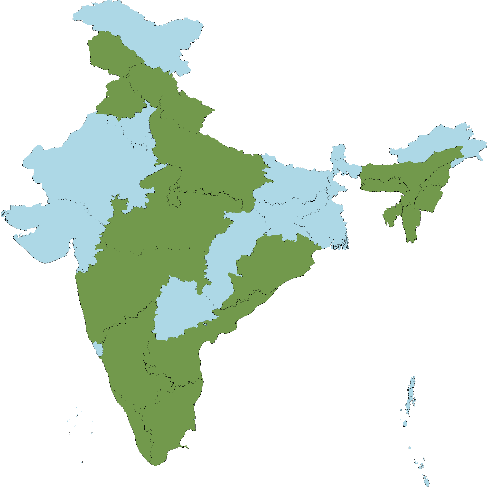 - Andhra Pradesh : Chittoor district, Kurnool district, Nellore district, East Godavari district, Kadapa district, Vishakapatnam district, Anantapur district, Srikakulam district, West Godavari district