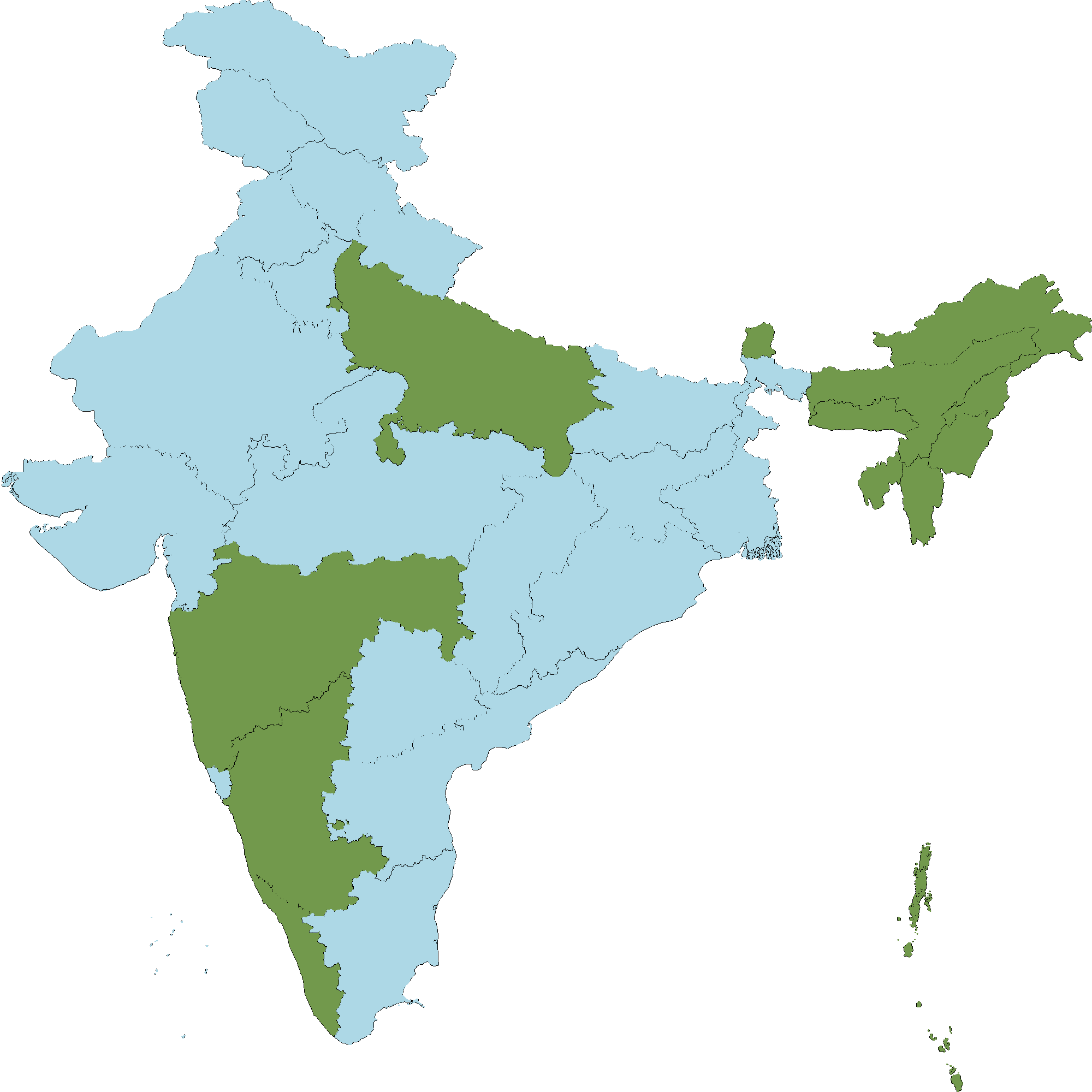 - Karnataka : Uttara Kannada district, Hassan district, Udupi district, Dakshina Kannada district, Kodagu (Coorg) district