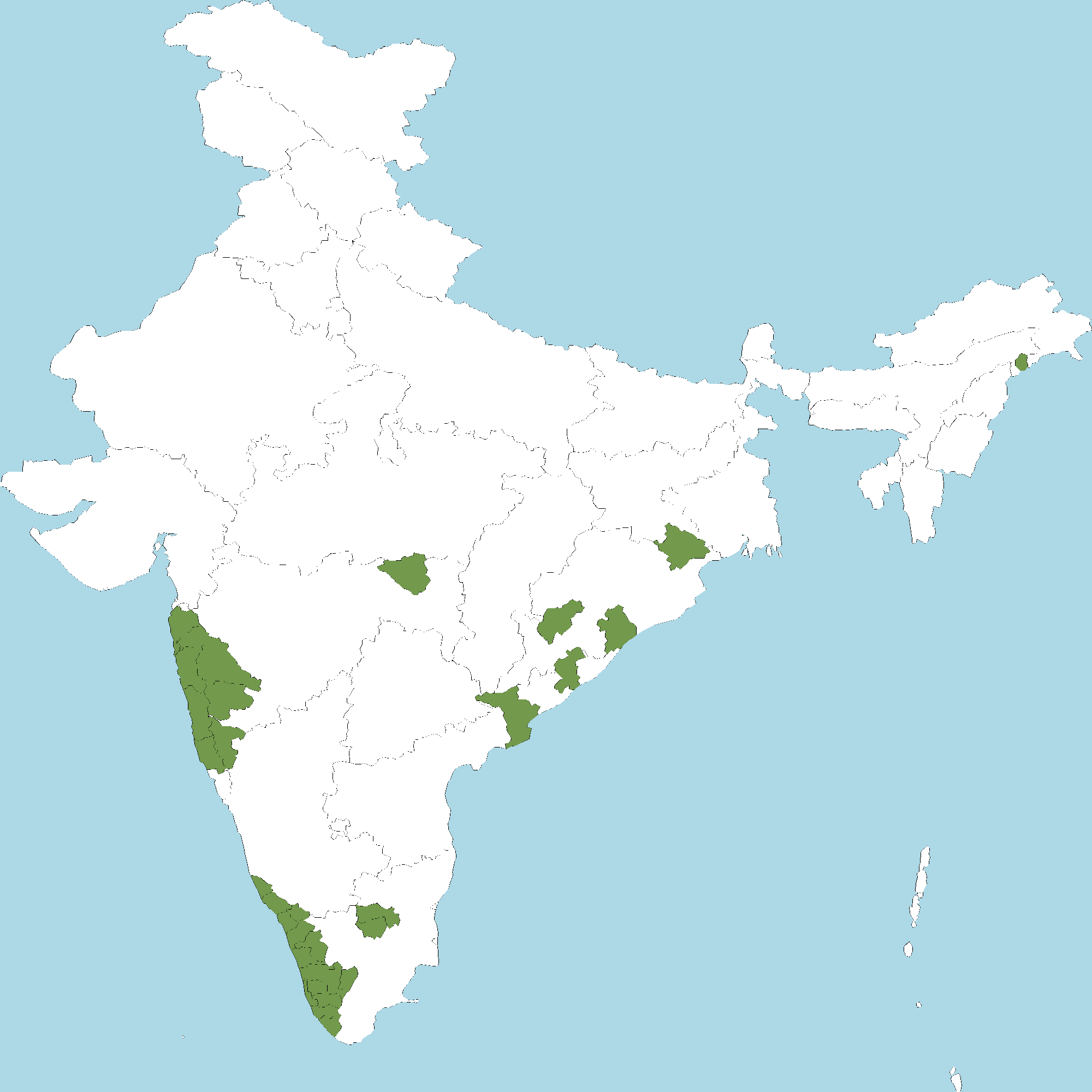 - Kerala : All districts of Kerala