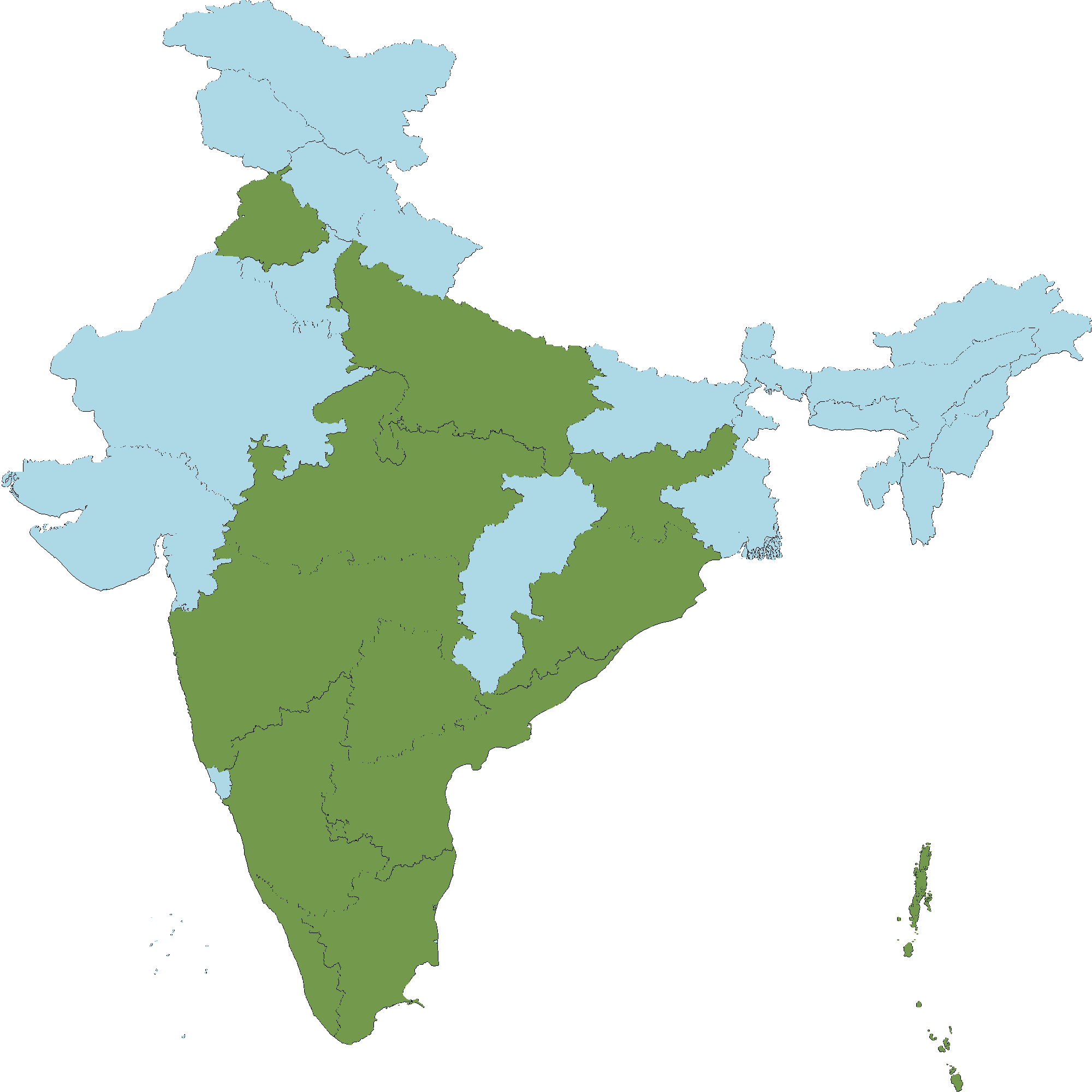 - Karnataka : Bengaluru district, Ballari district, Chitradurga district, Dakshina Kannada district, Davanagare district, Hassan district, Mysuru district, Raichur district, Tumakuru district, Udupi district, Kodagu (Coorg) district