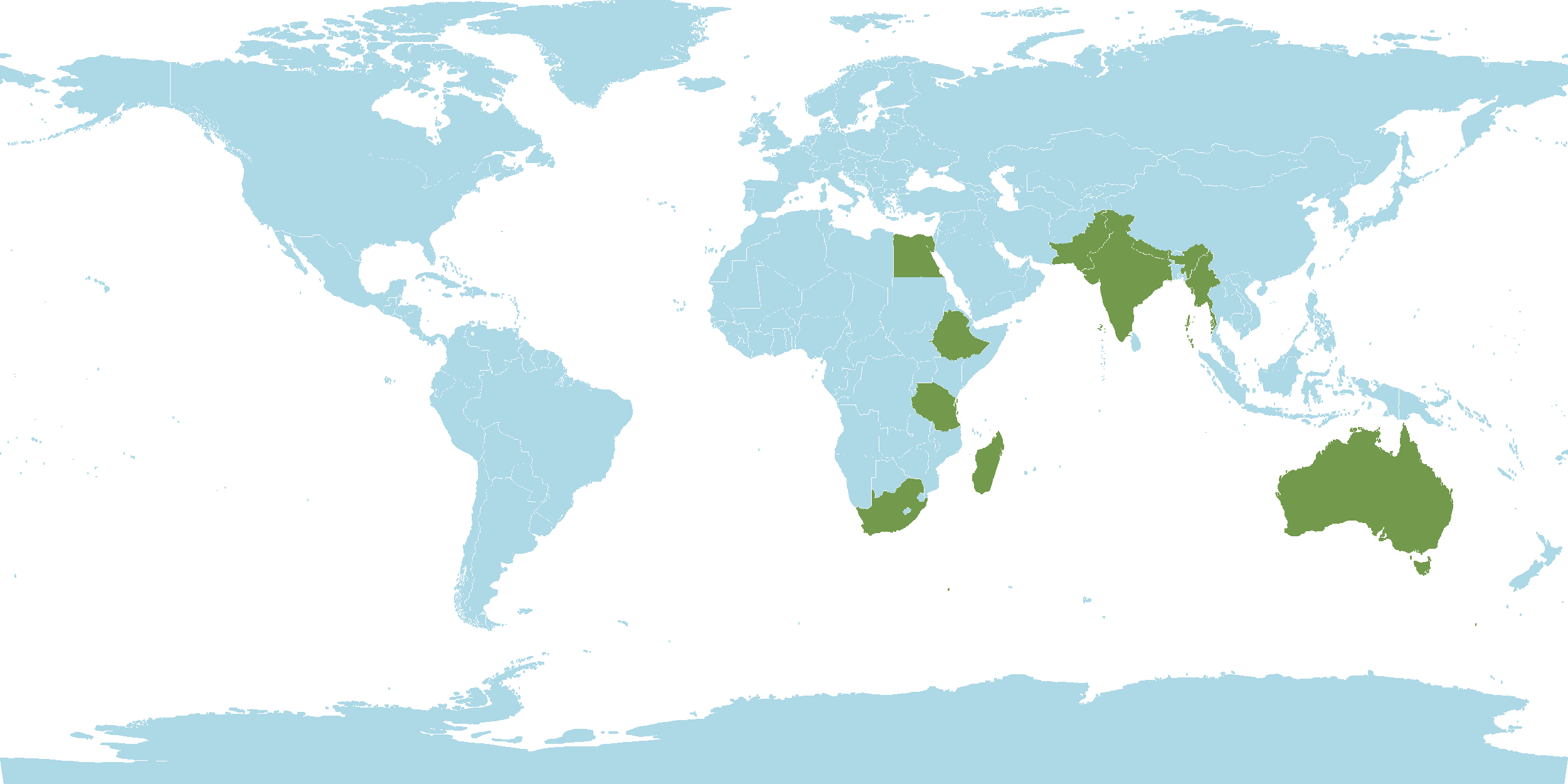 - World Distribution : Australia, Egypt, Ethiopia, India, Madagascar, Myanmar, Nepal, Pakistan, South Africa, Tanzania, Tropical Himalayas