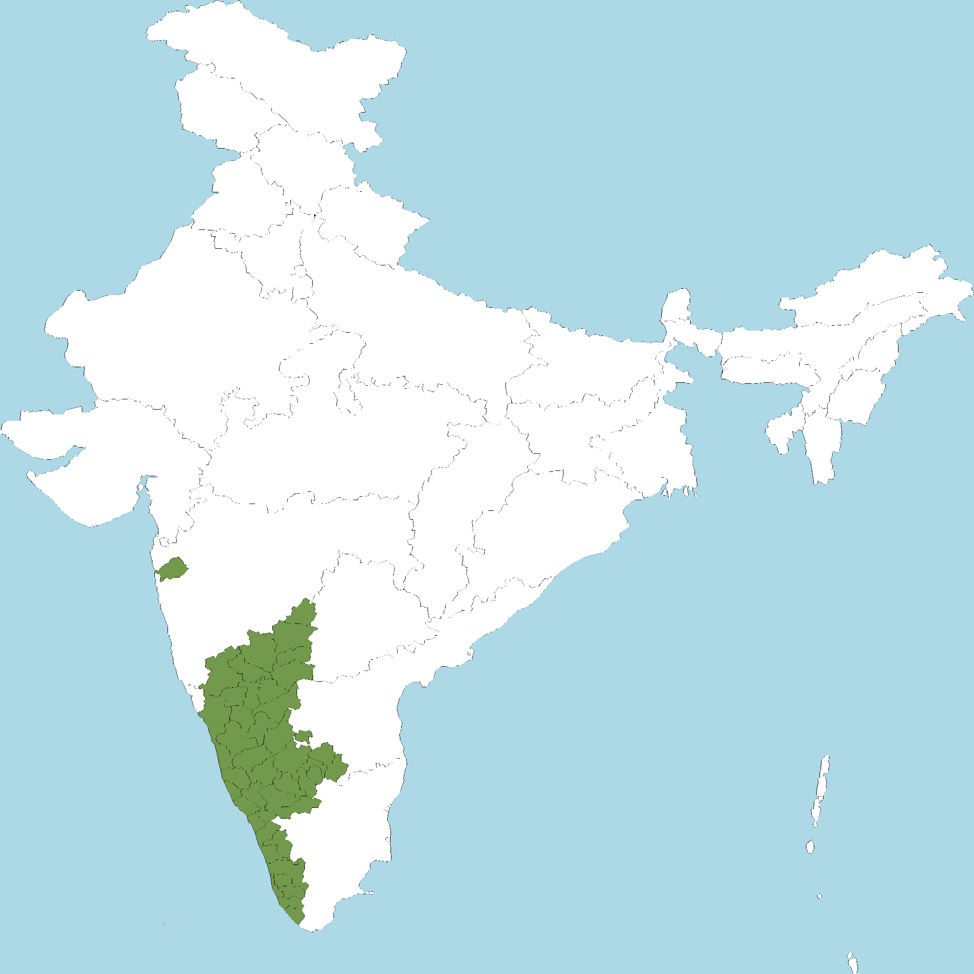 - Kerala : All districts of Kerala