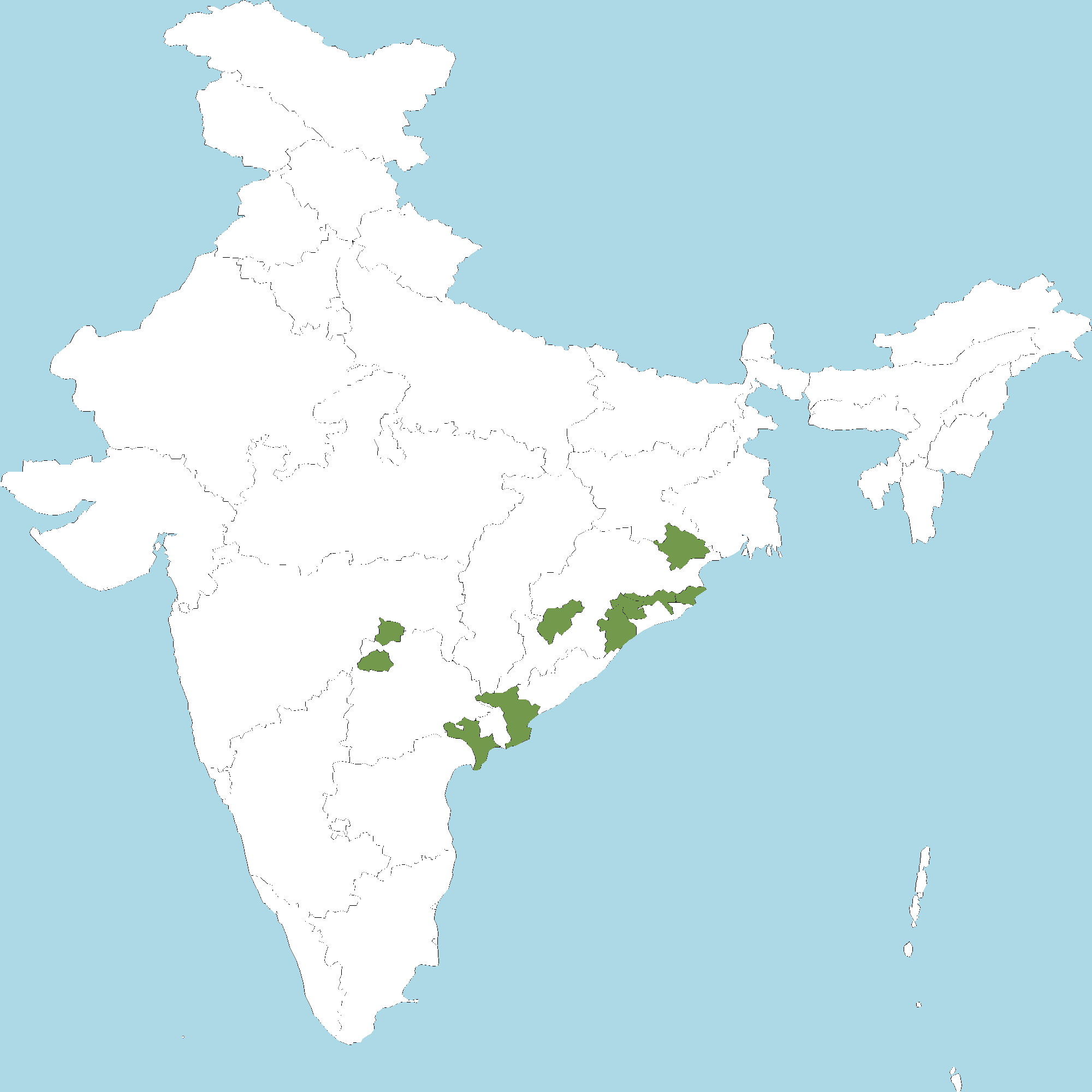• Odisha : Mayurbhanj district, Ganjam district, Nayagarh district, Kalahandi district, Kendrapara district, Cuttack district