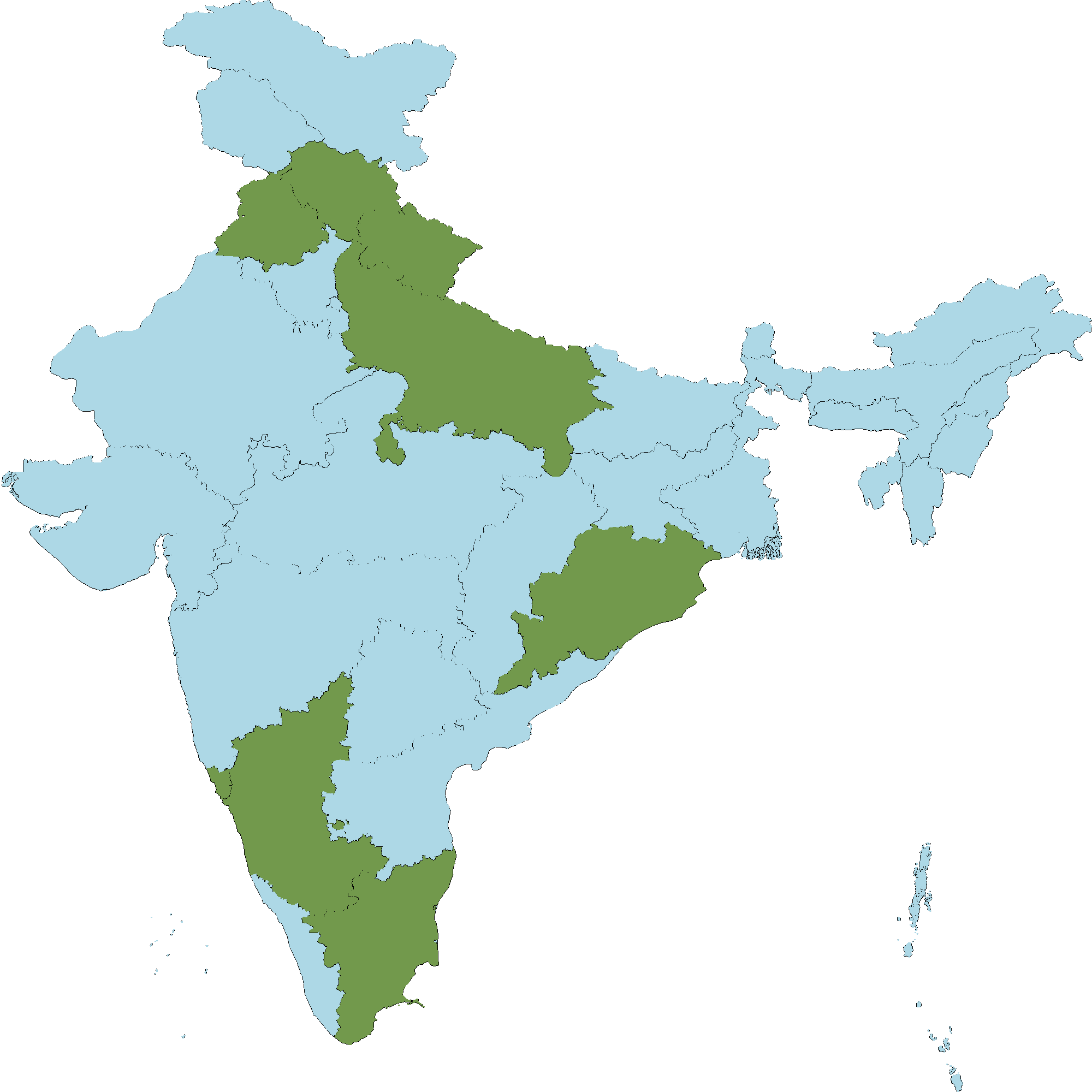 • Karnataka : Belagavi district, Ballari district, Dakshina Kannada district, Uttara Kannada district, Udupi district