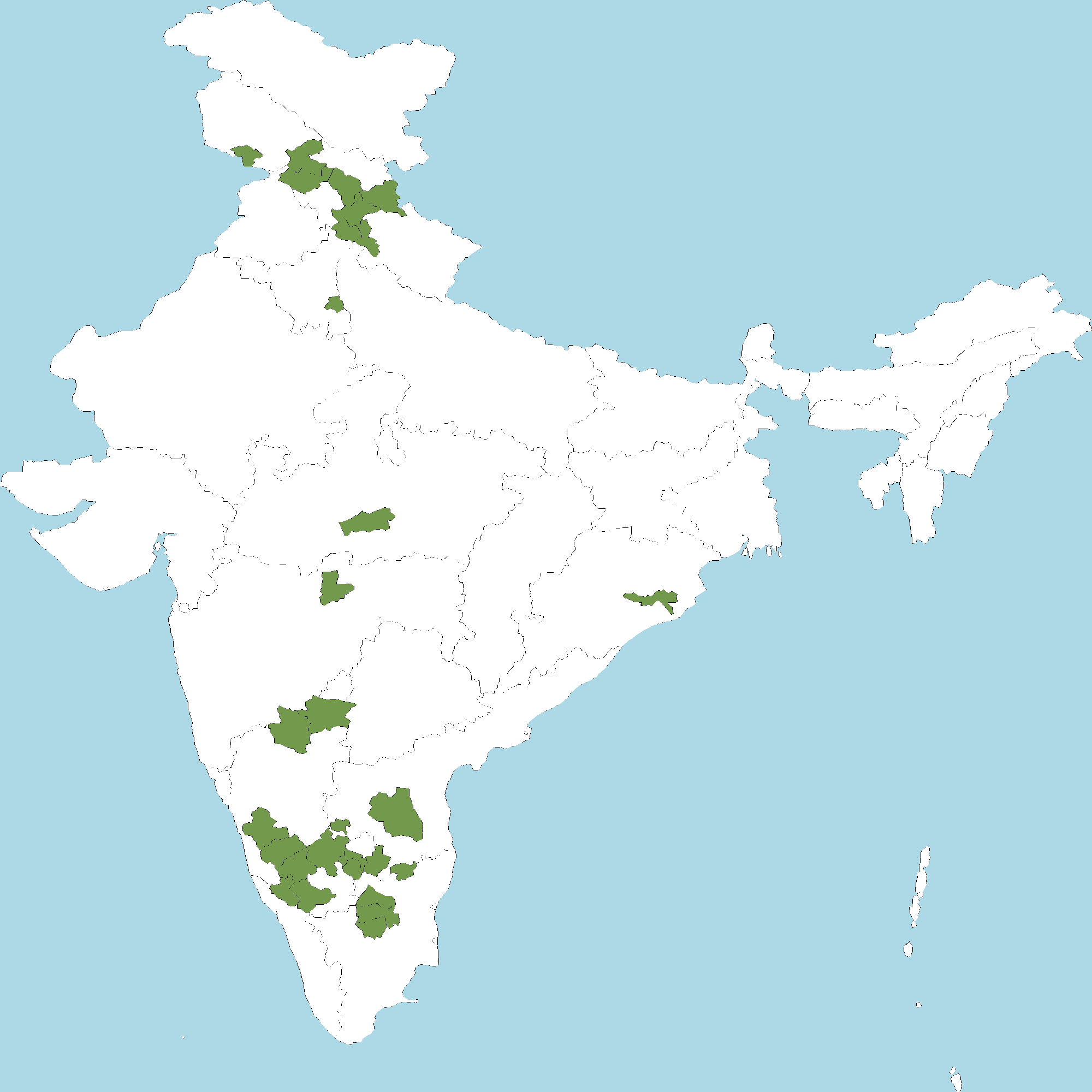 - Tamil Nadu : Vellore district, Dharmapuri district, Salem district, Namakkal district